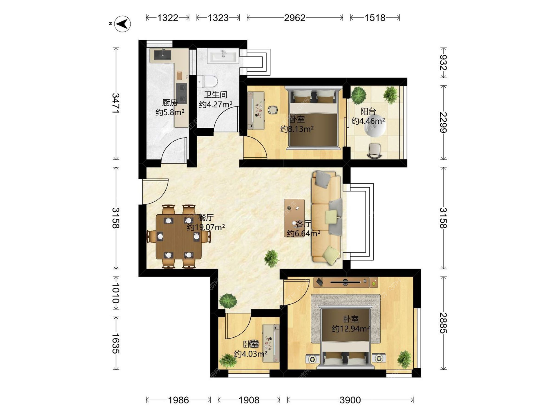 3房2厅1卫