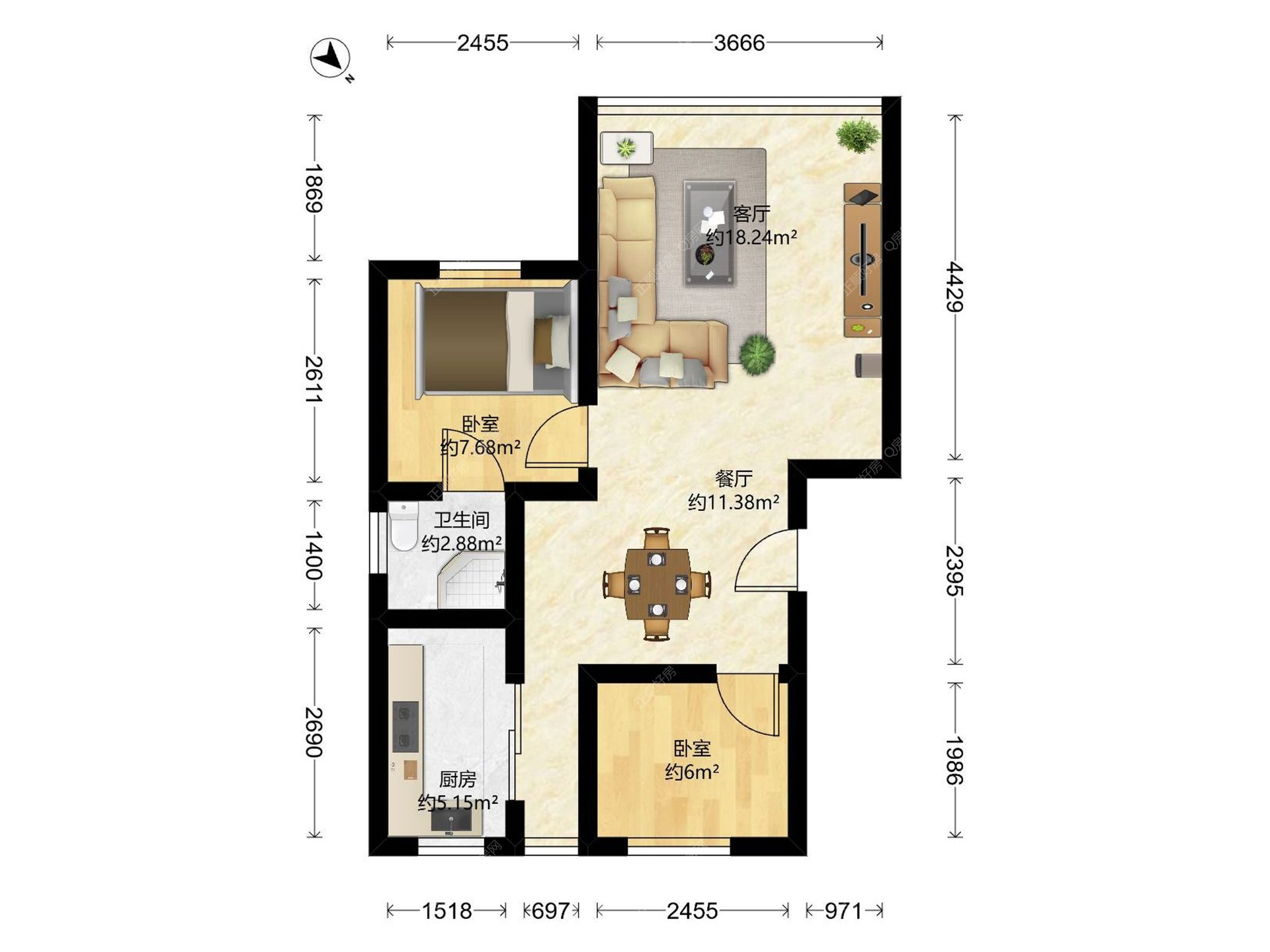 2房2厅1卫