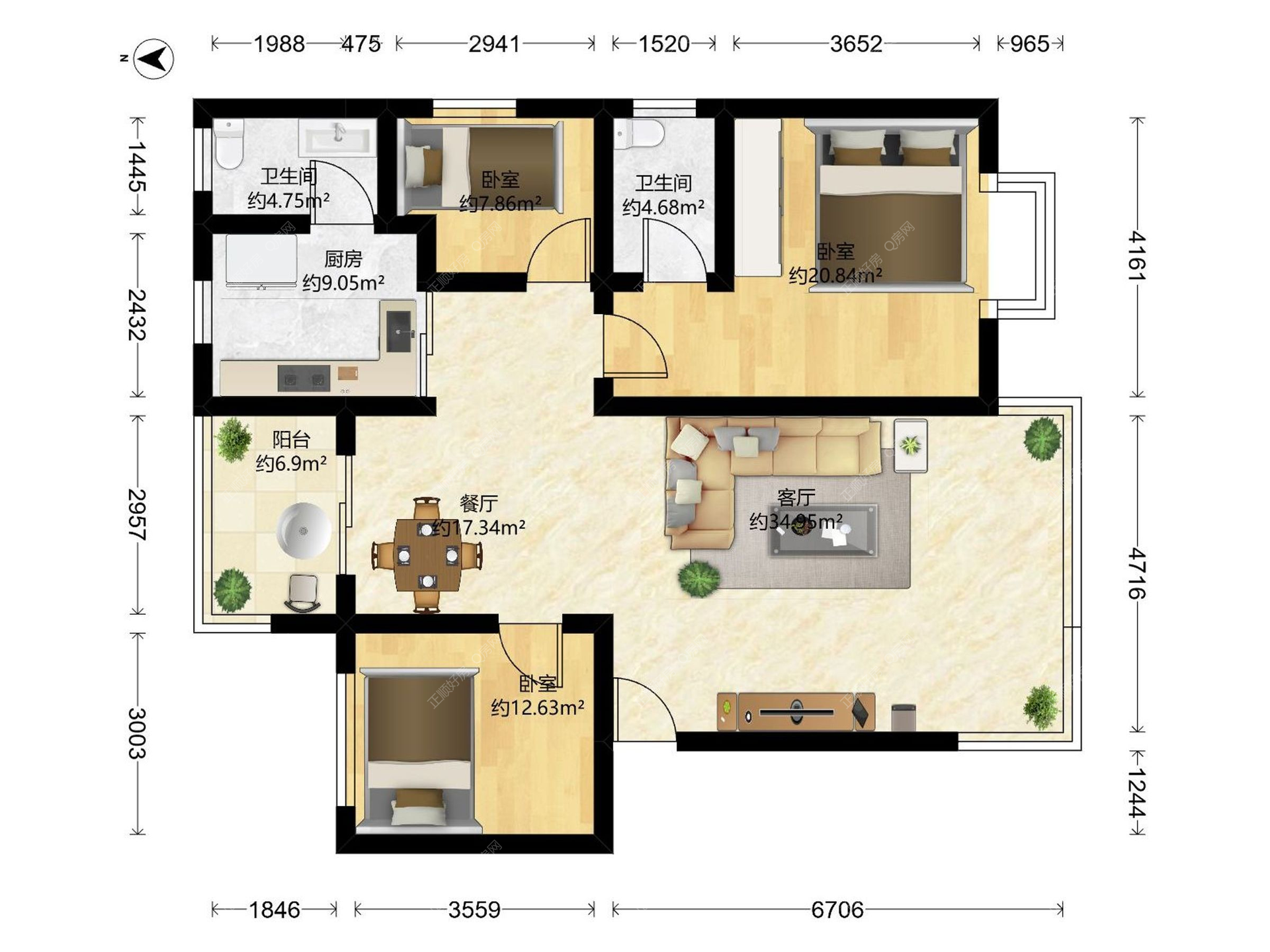 3房2厅1卫