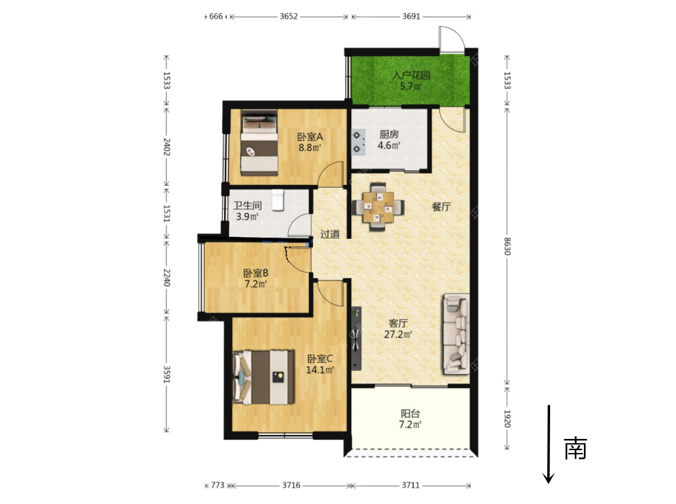 3房2厅1卫