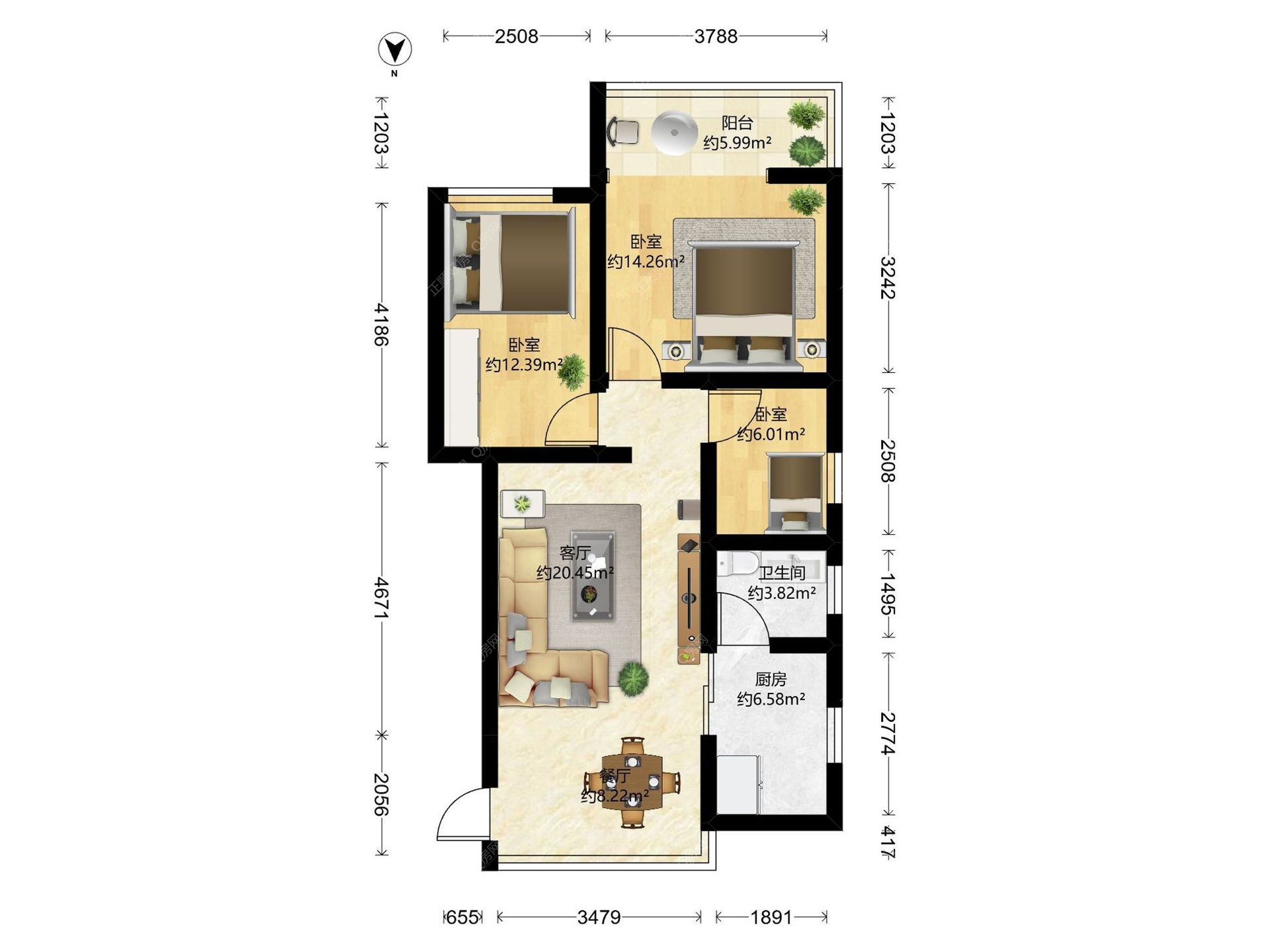 3房2厅1卫