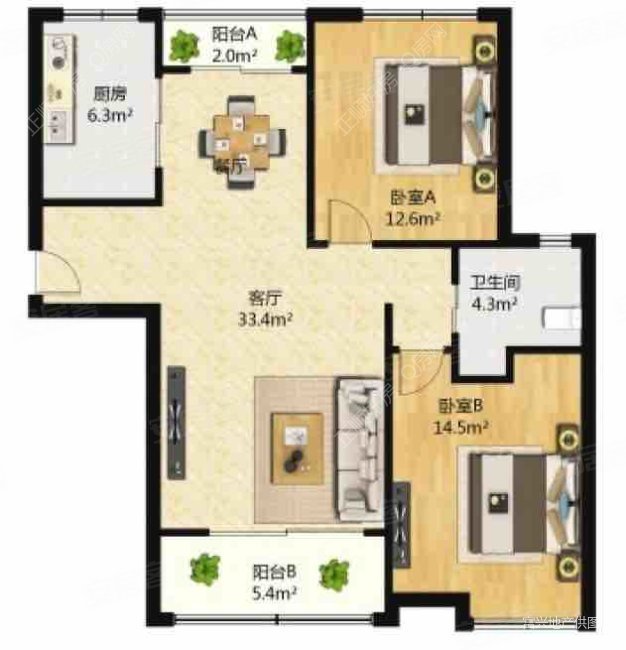 1房2厅1卫