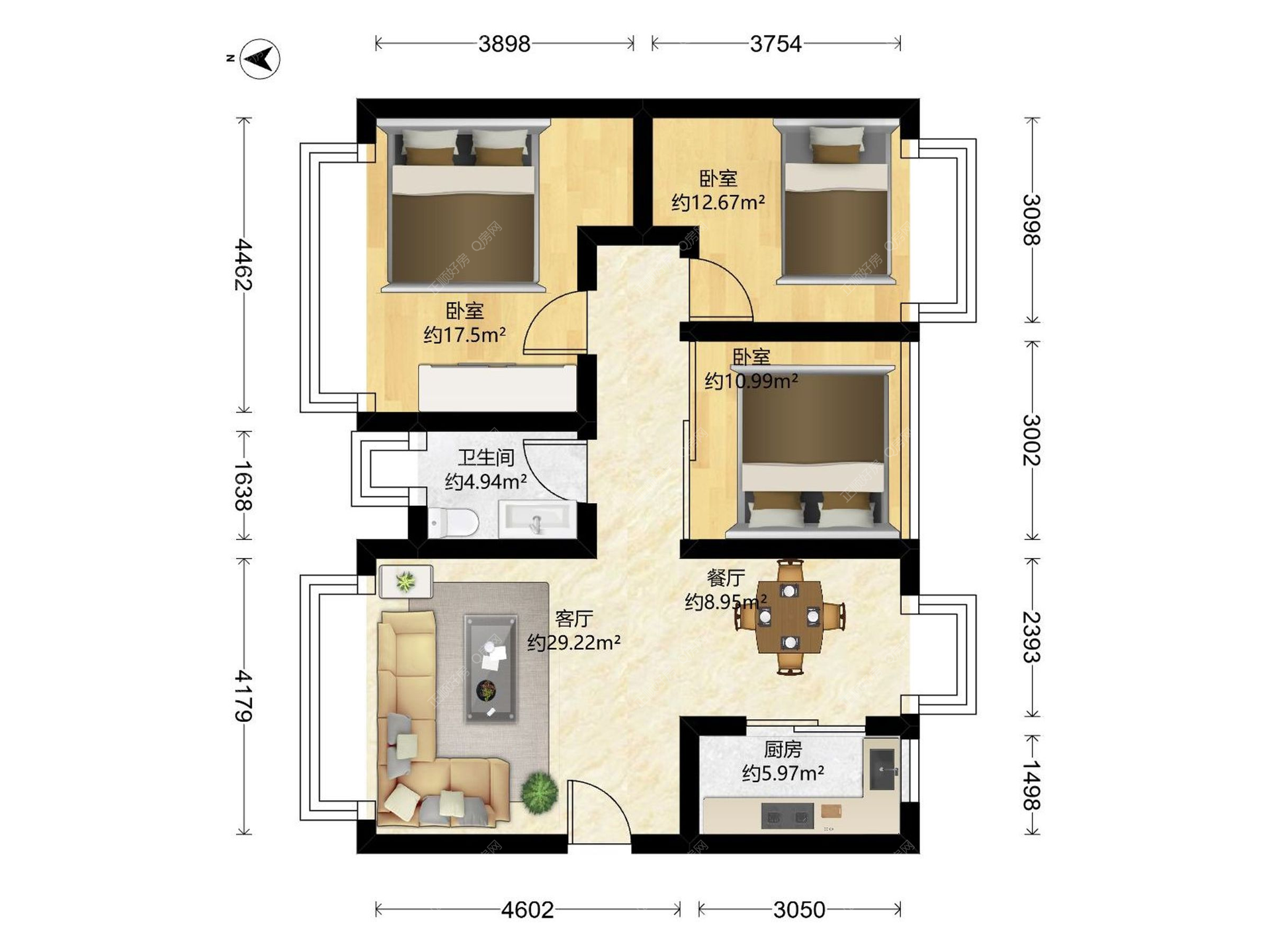 3房2厅1卫