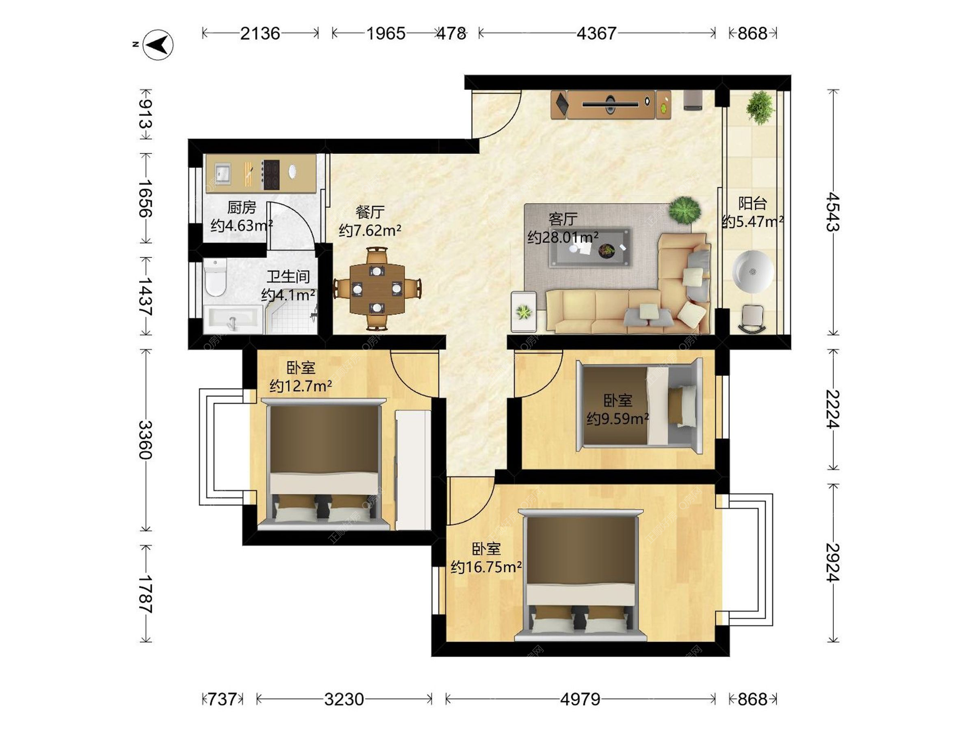 3房2厅1卫
