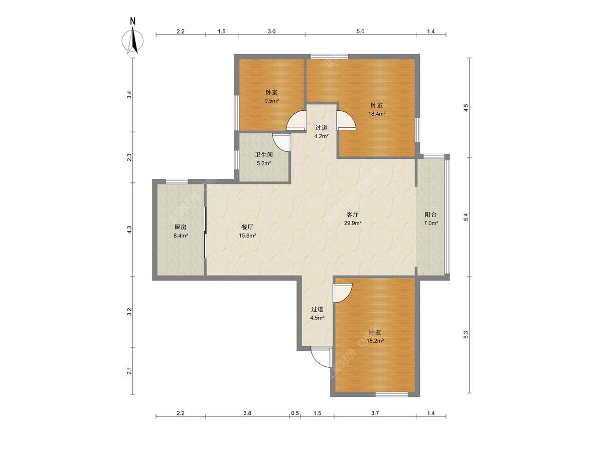 老香洲 丹田广场 123.53㎡ 3房2厅 朝北