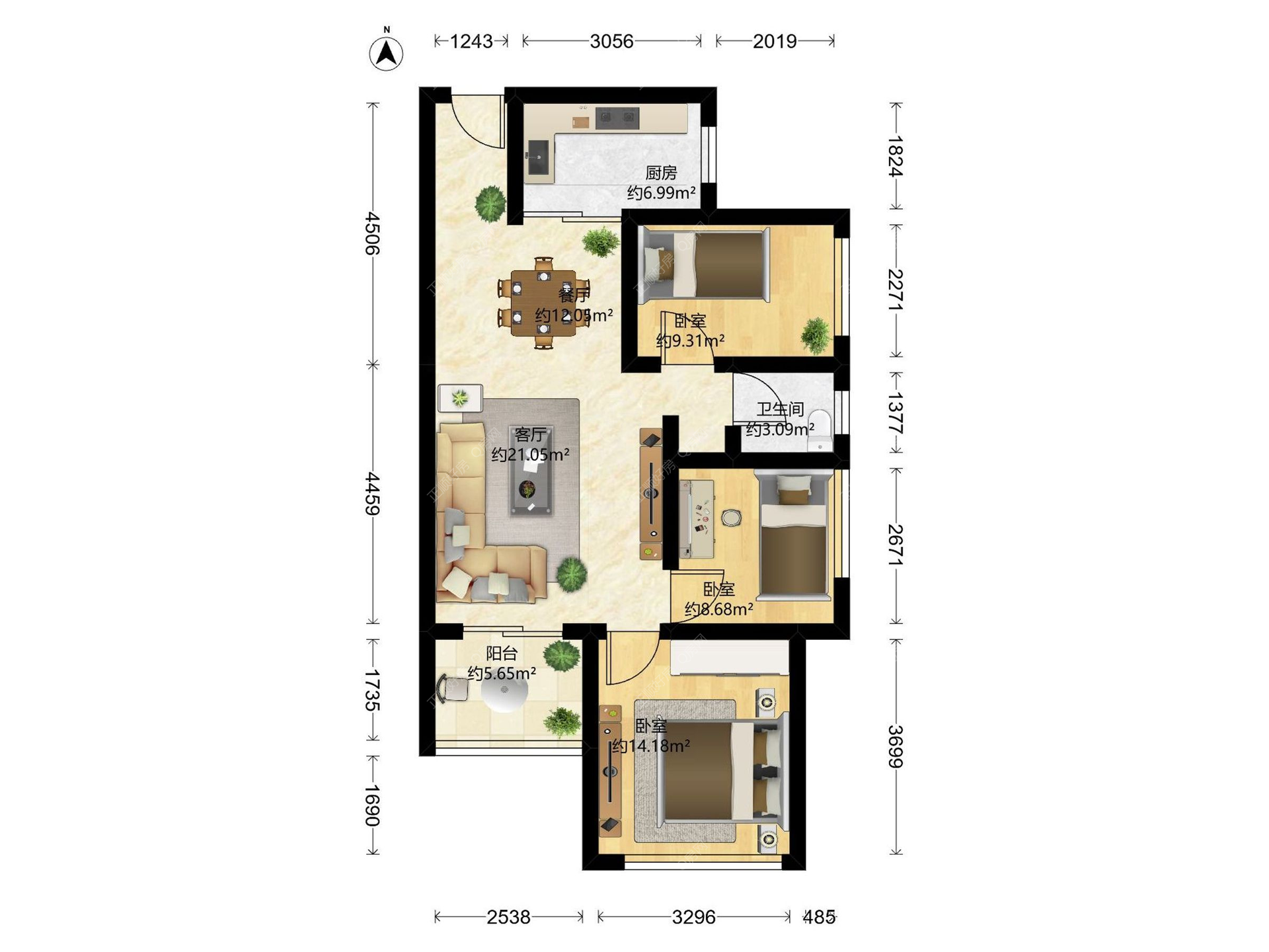 3房2厅1卫