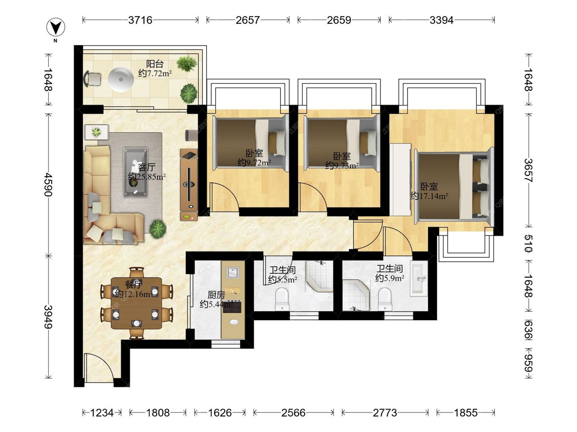 3房2厅1卫