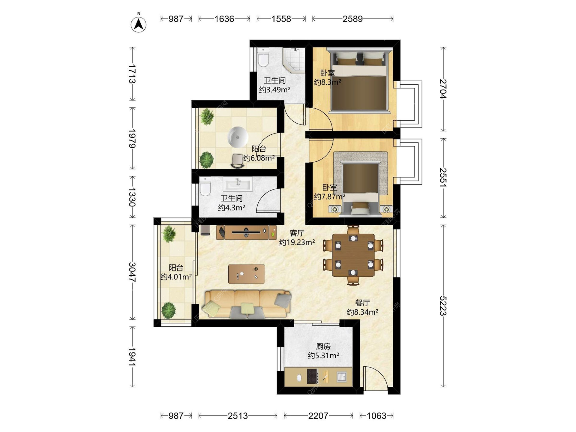 3房2厅1卫