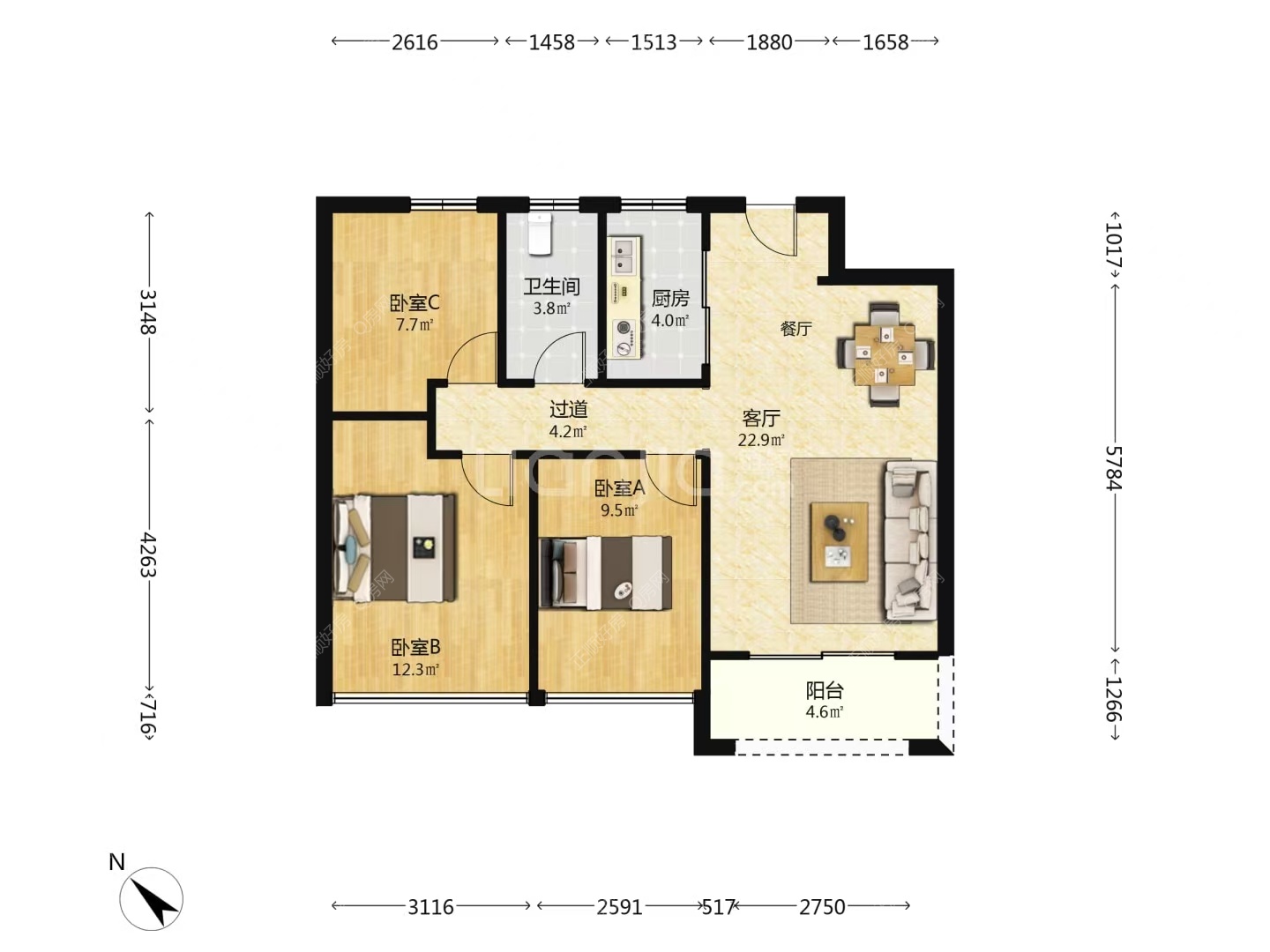 3房2厅1卫