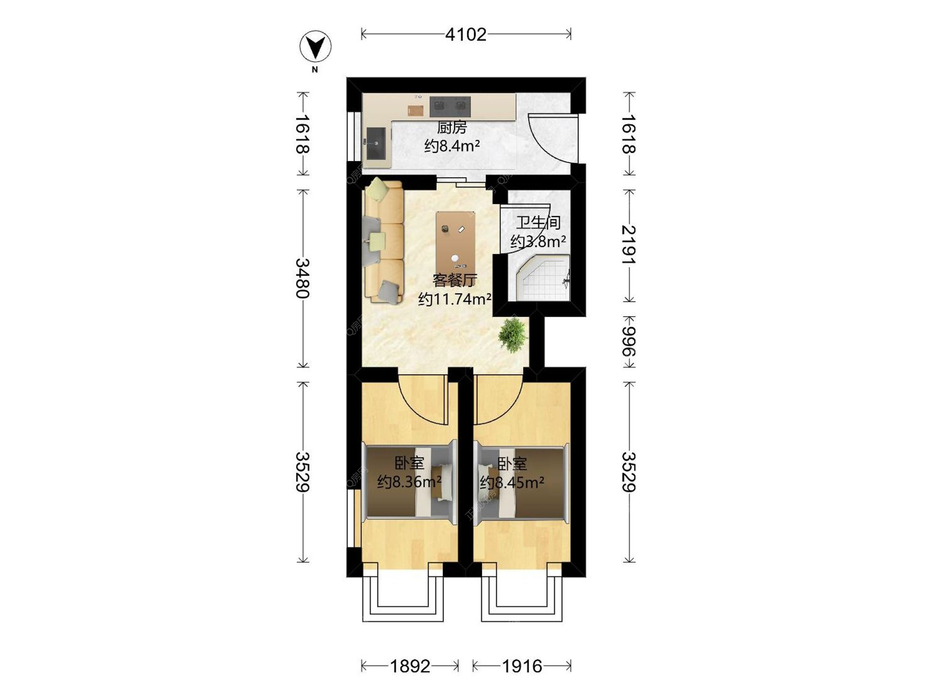2房1厅1卫