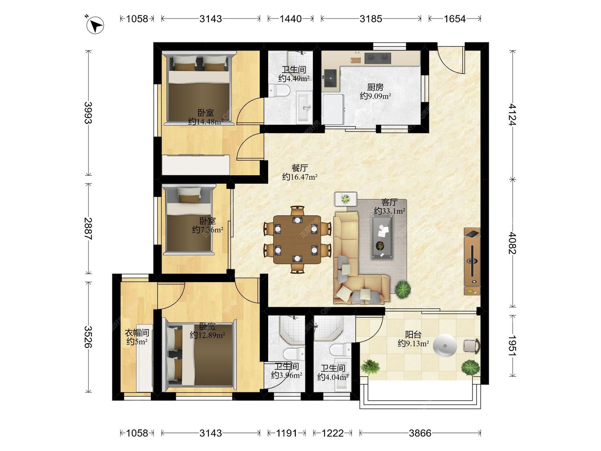3房2厅3卫