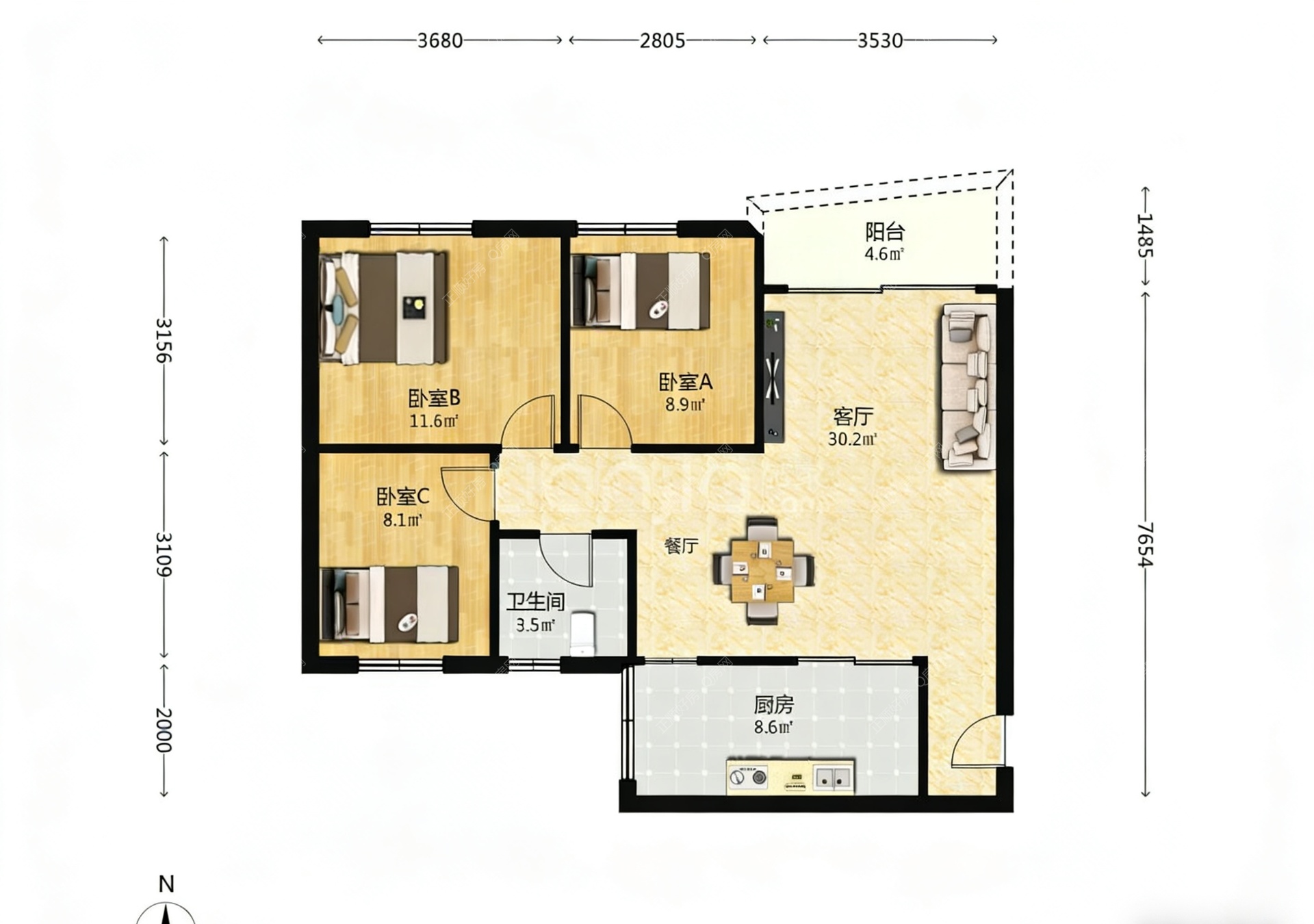 3房2厅1卫