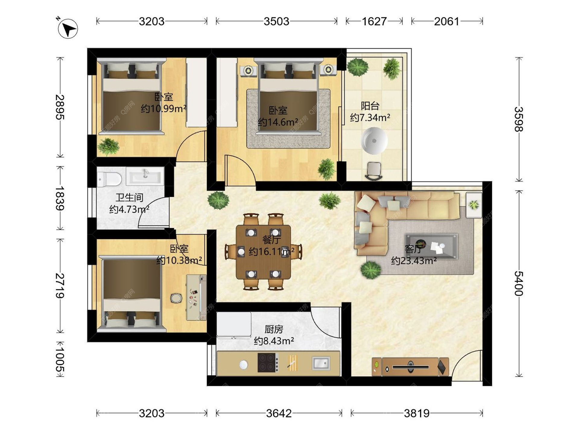 3房2厅1卫