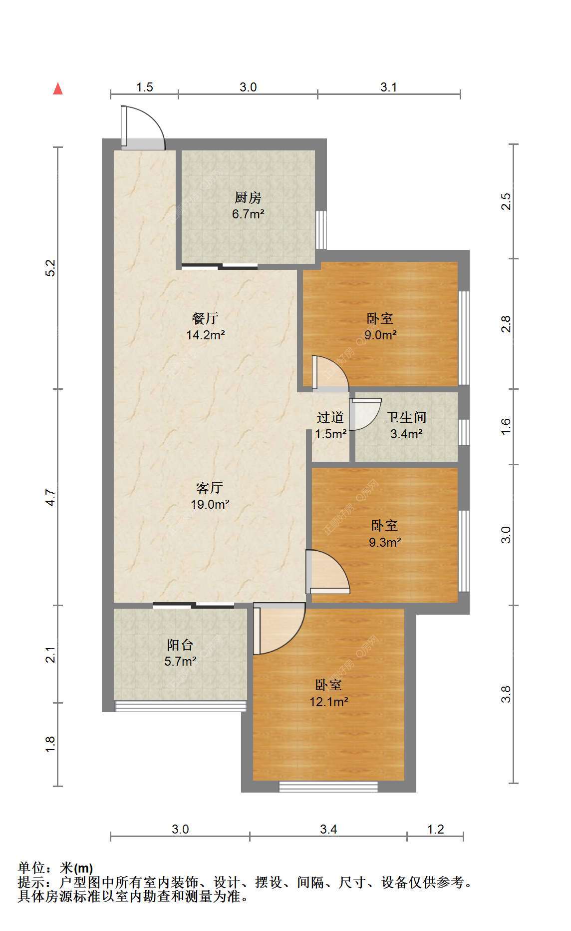 3房2厅1卫