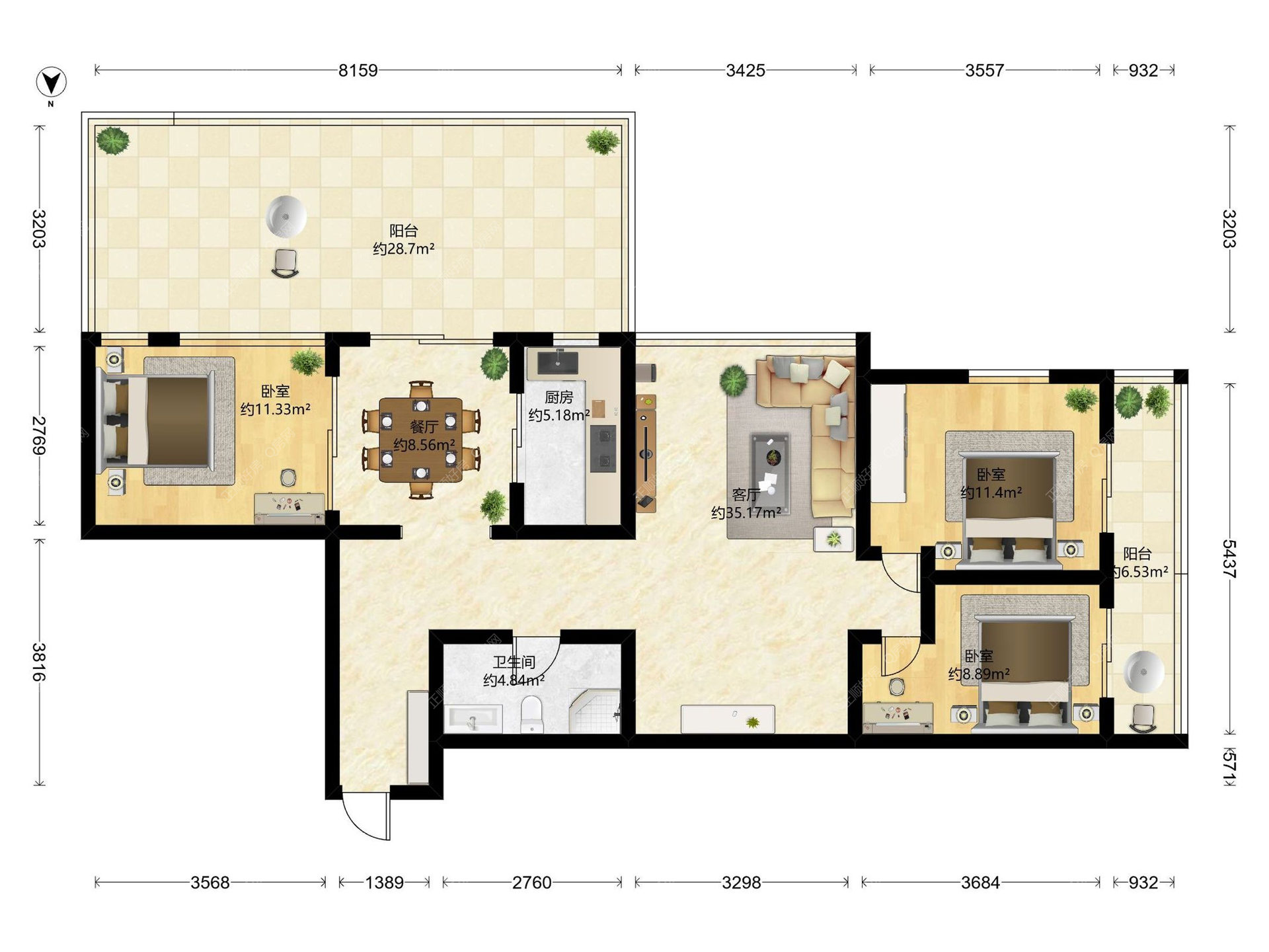 3房2厅1卫