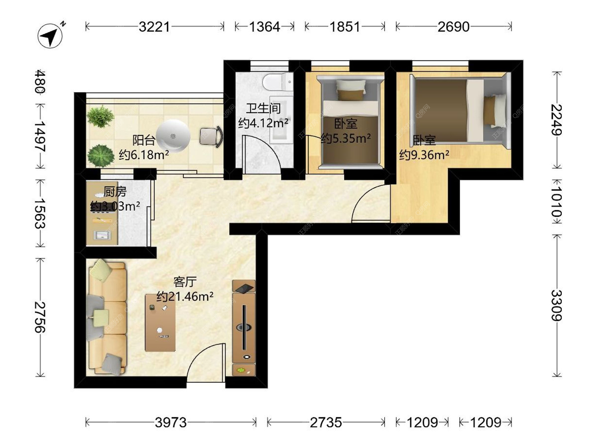 2房2厅1卫