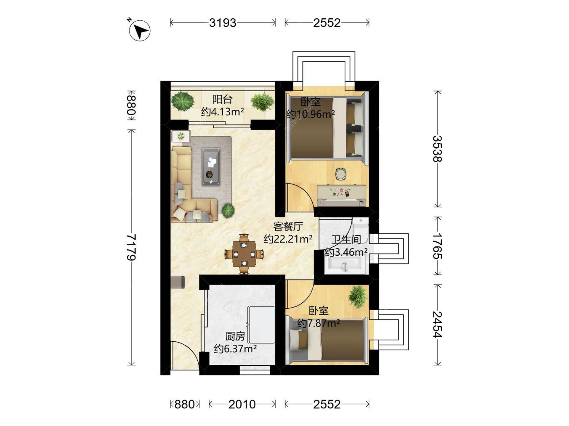 金湾 柠檬印象 55.00㎡ 2房1厅 朝东北