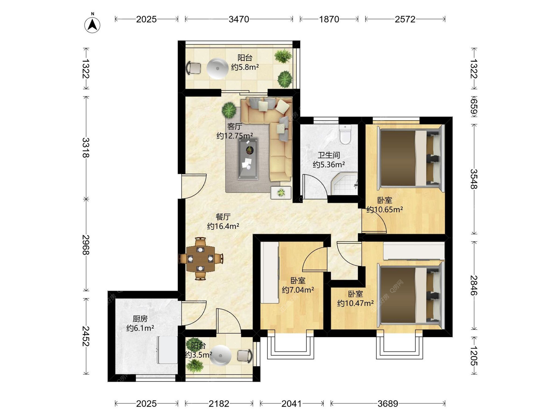 3房2厅1卫