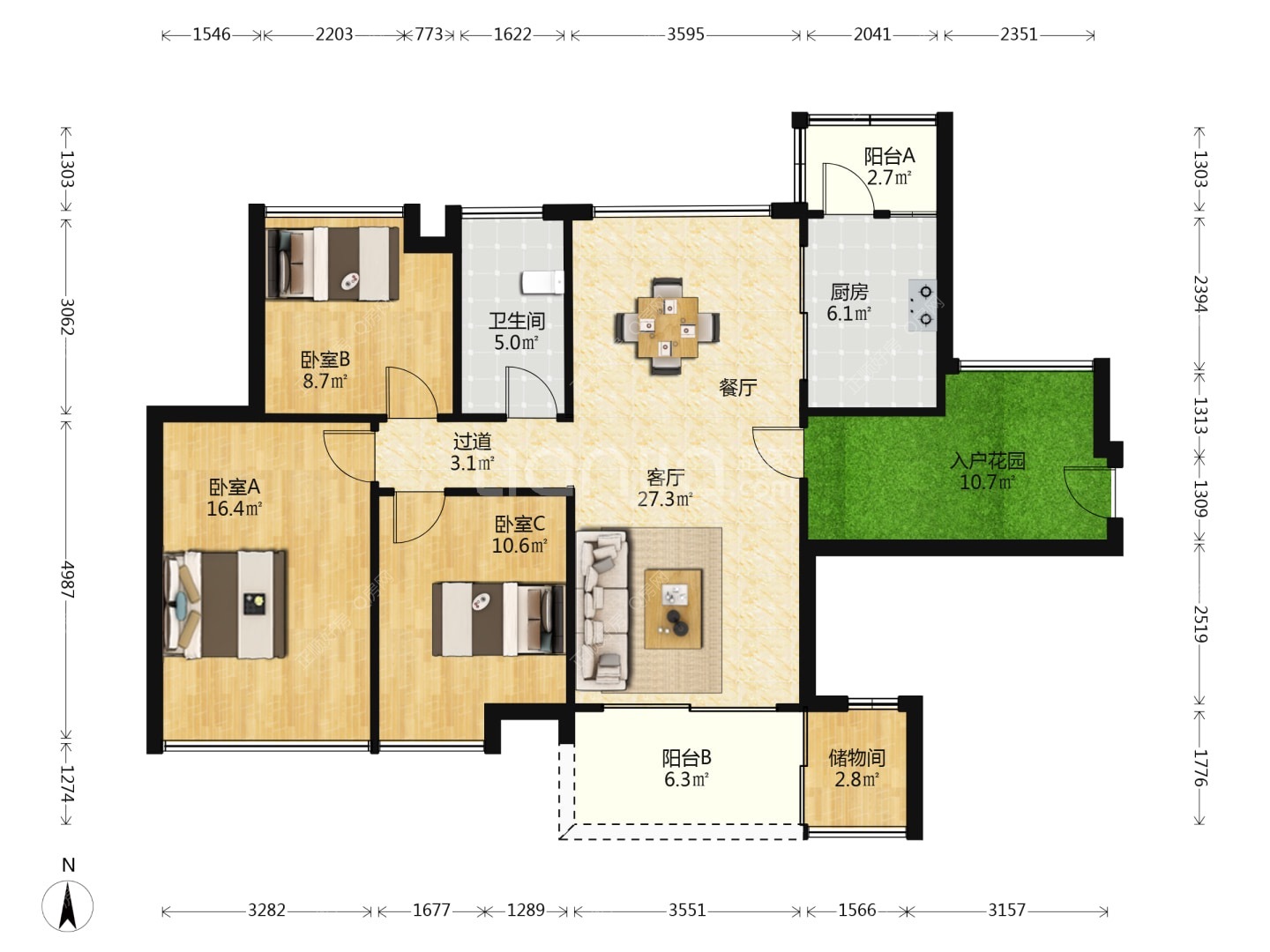 3房2厅1卫