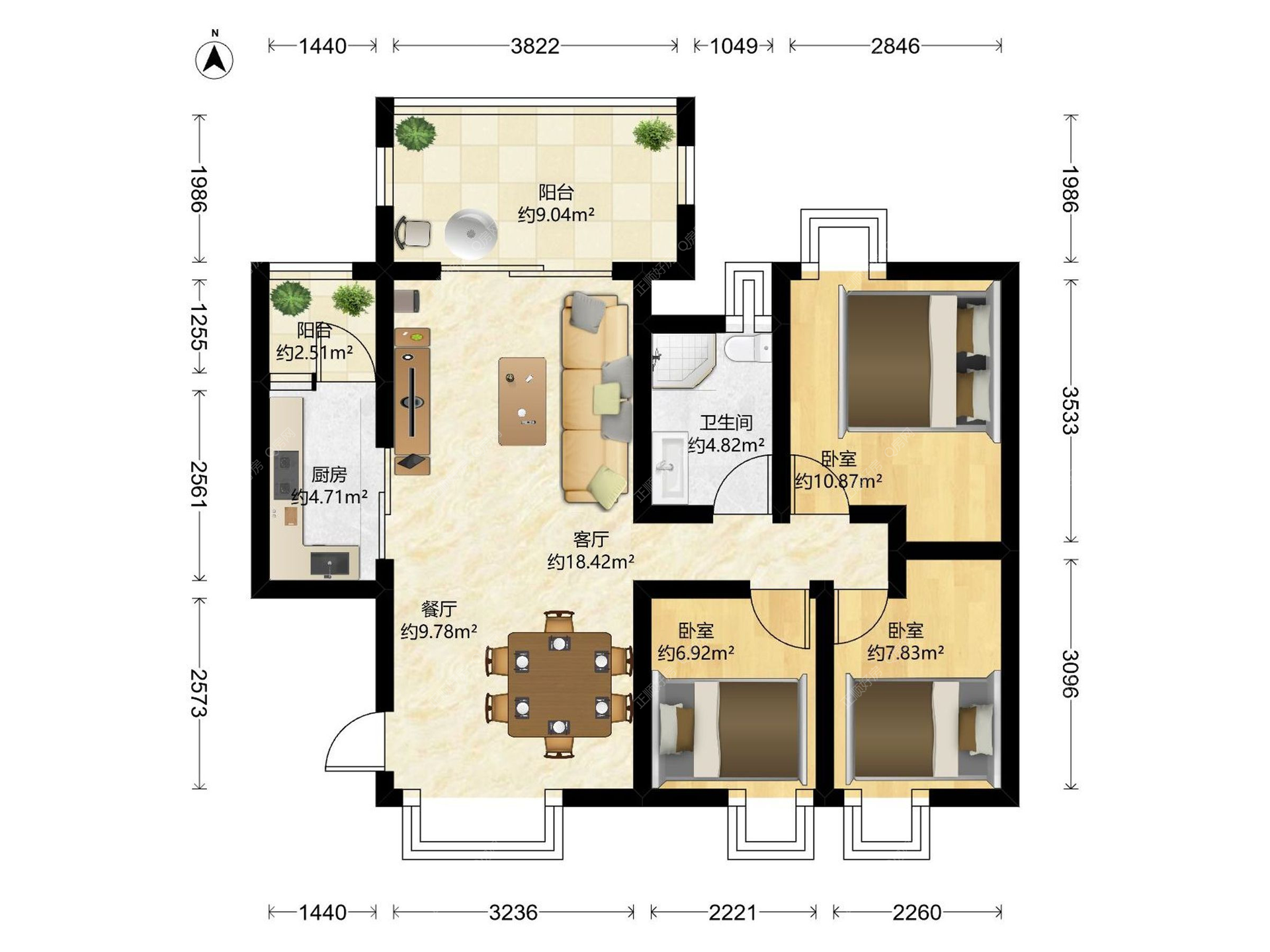 3房2厅1卫