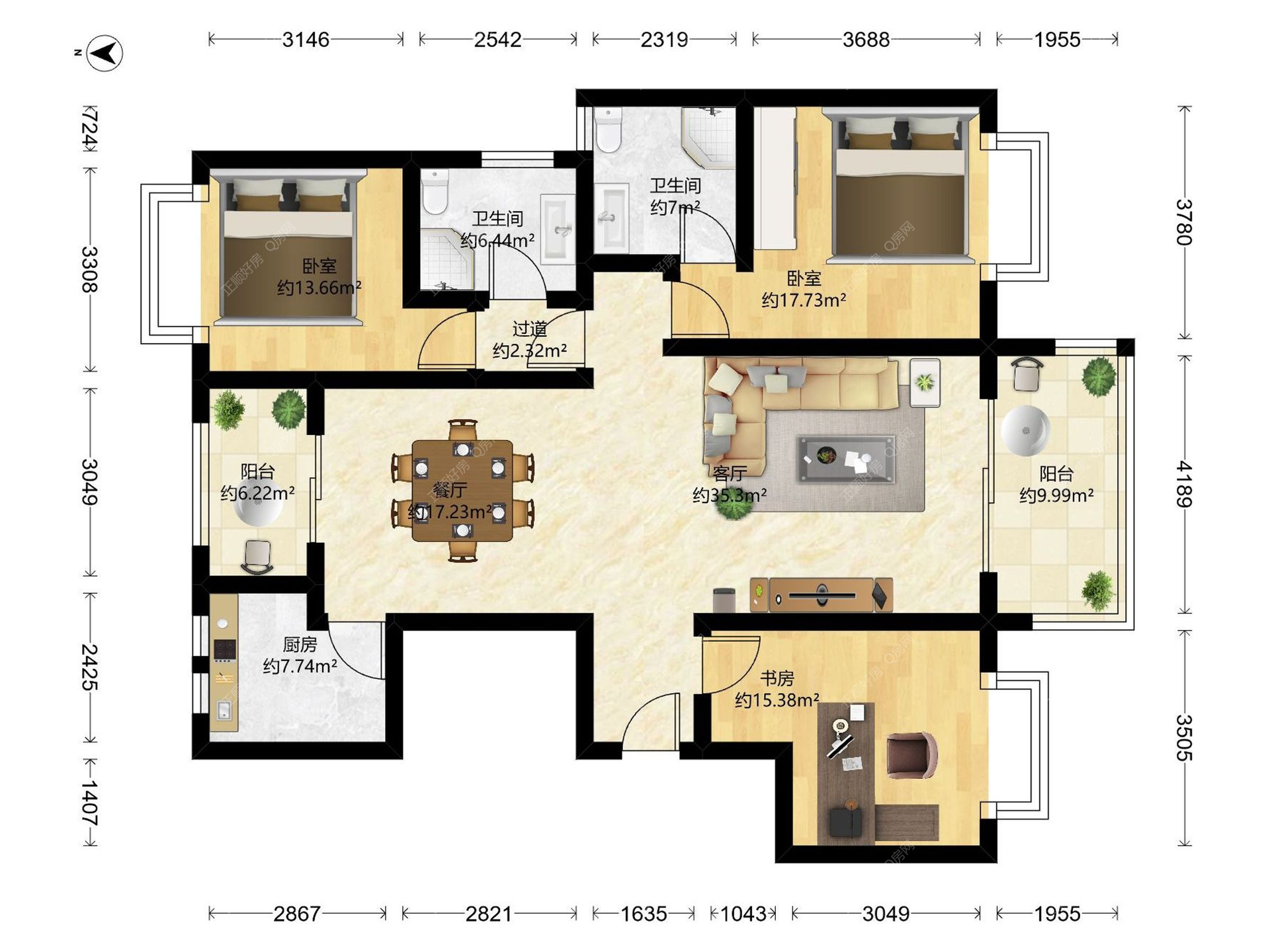 华发四季共30栋,1705套单位。其产品线丰富,赠送面积高,涵盖2-4房:其中2+1房约88—109㎡;三房约122—139㎡;3+1房约144-153㎡;四房约170—191㎡,3+2房约222-227㎡(楼王单位)。