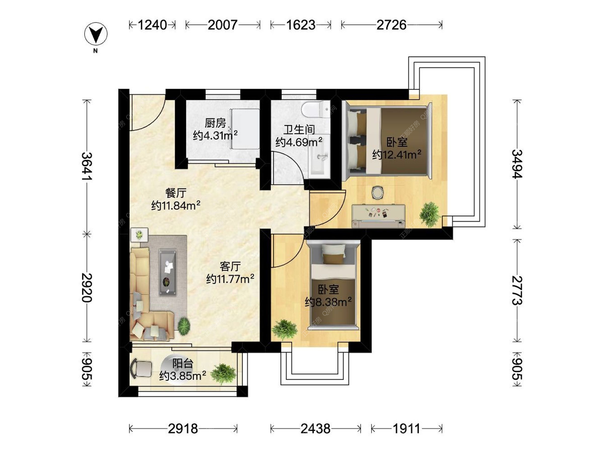 2房1厅1卫
