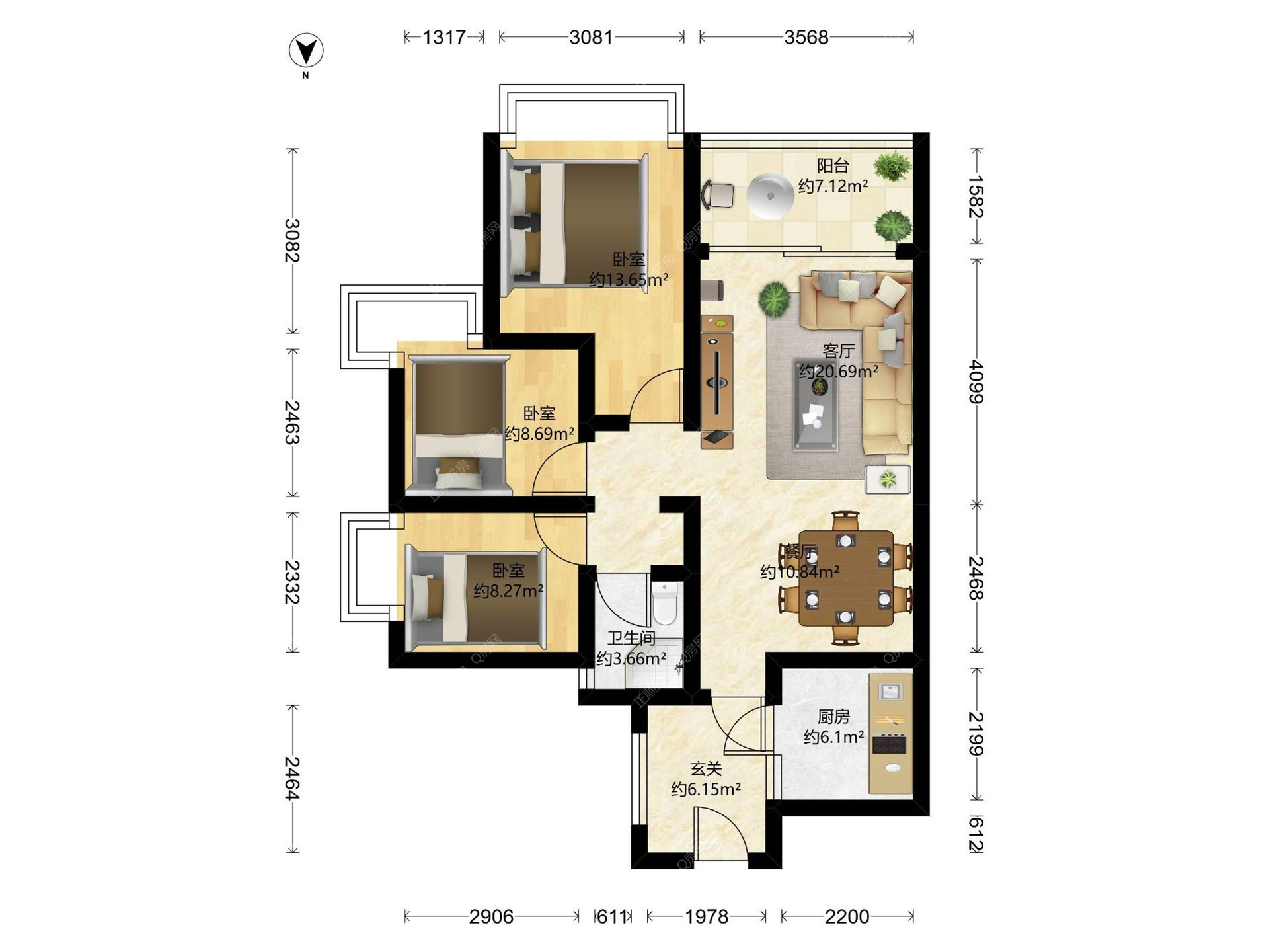 3房2厅1卫