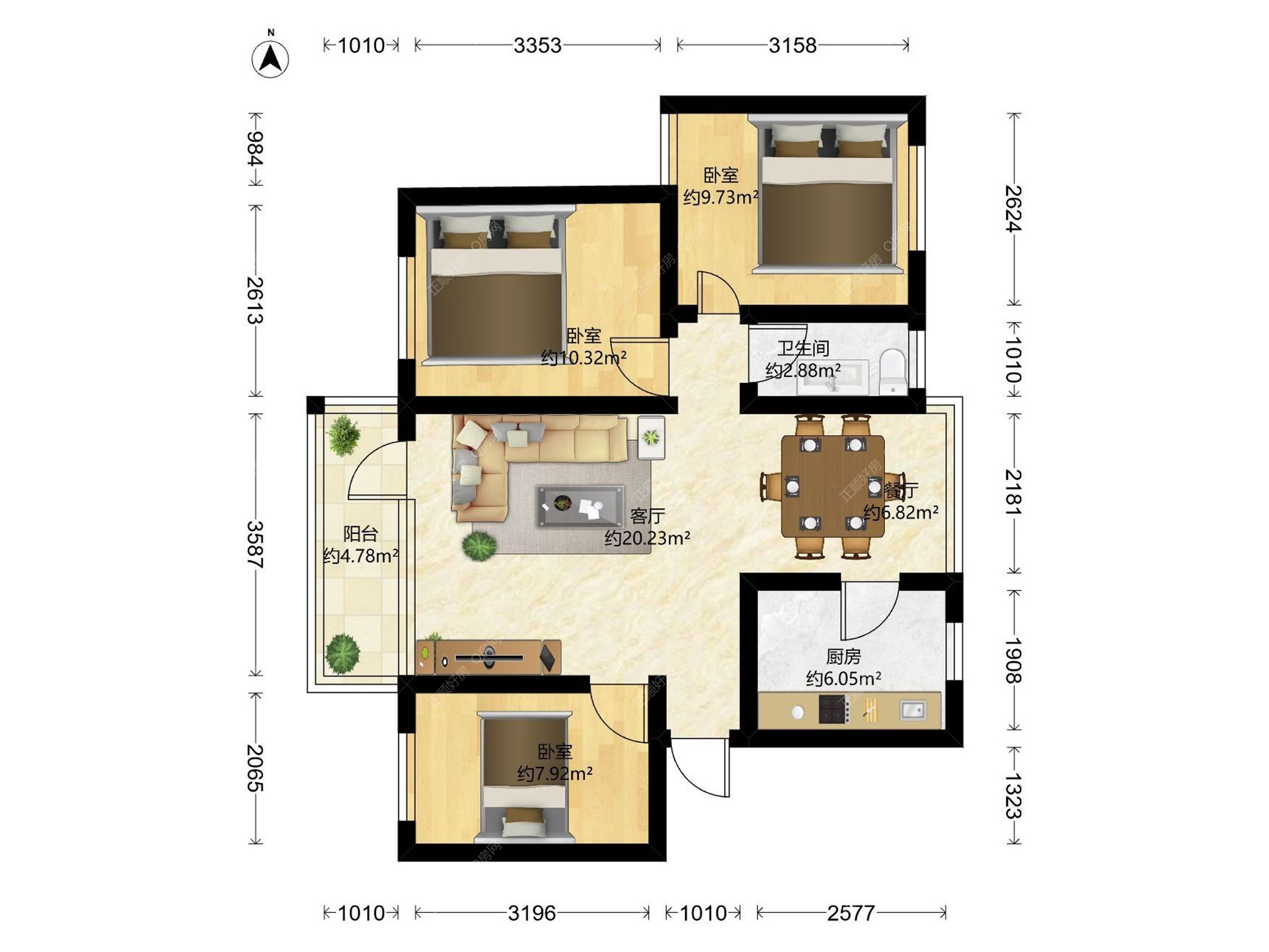 3房2厅1卫