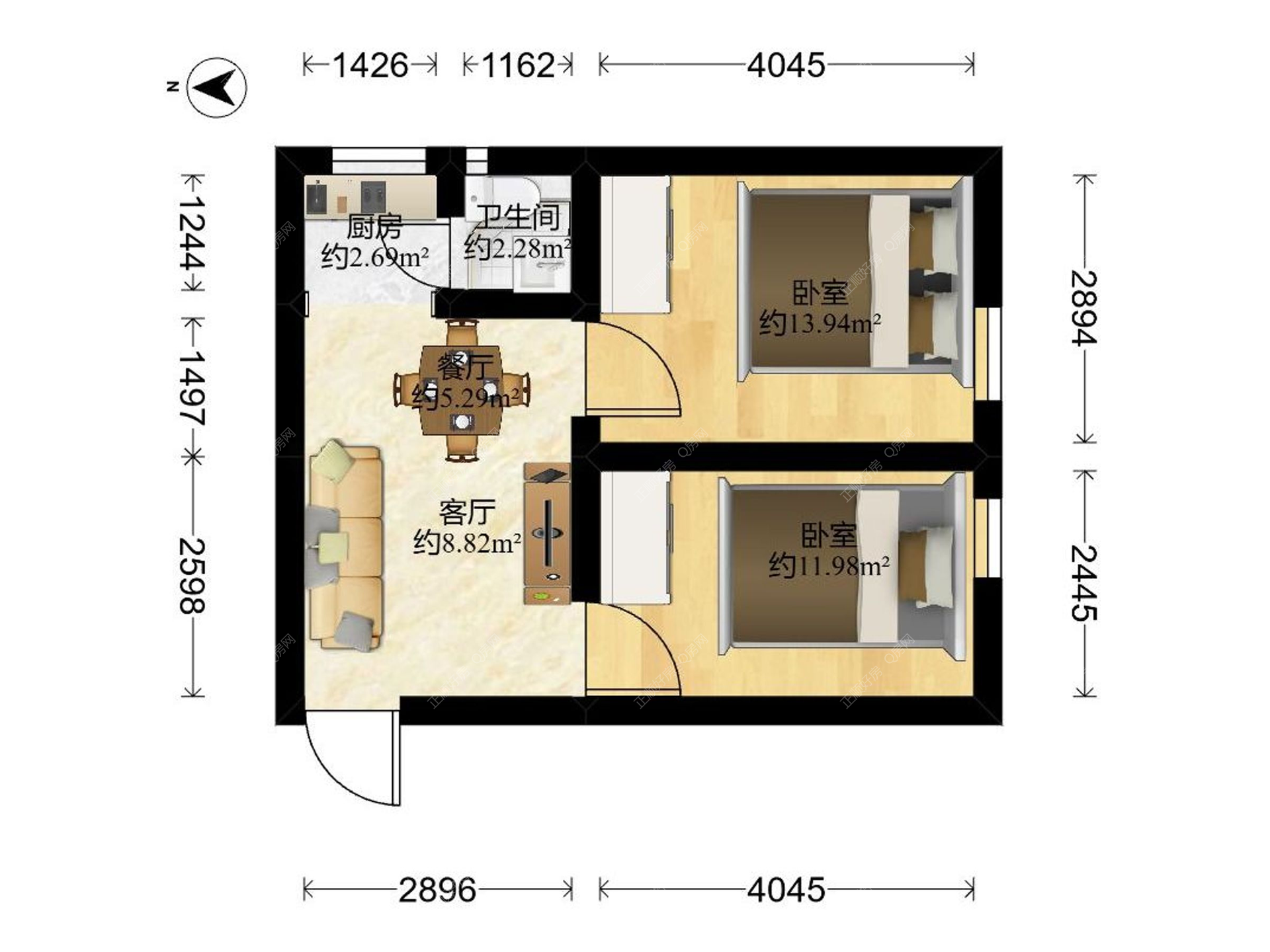2房1厅1卫