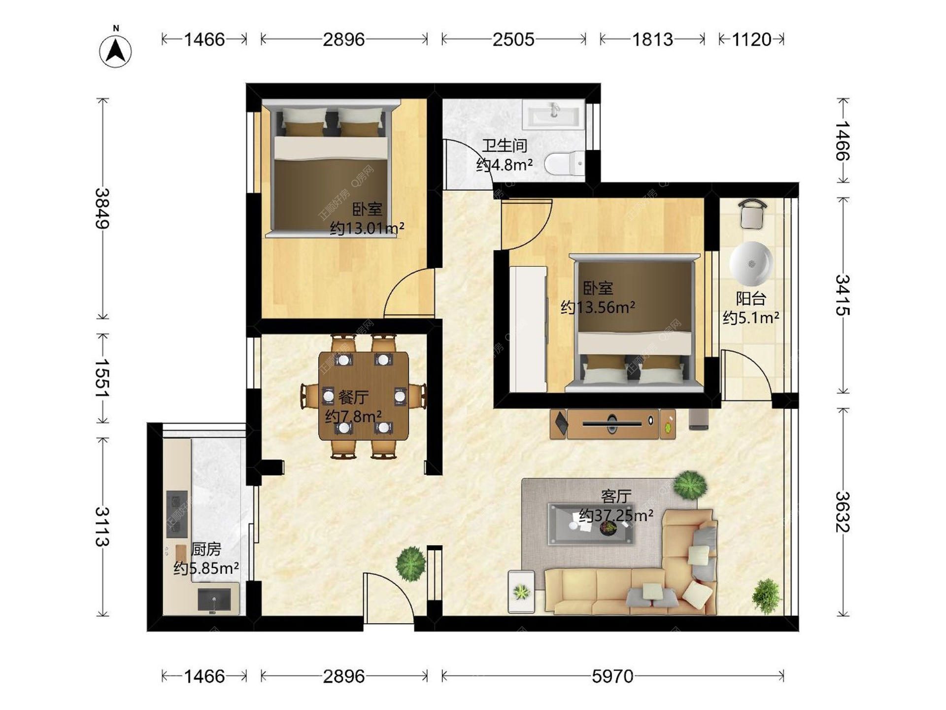 2房2厅1卫