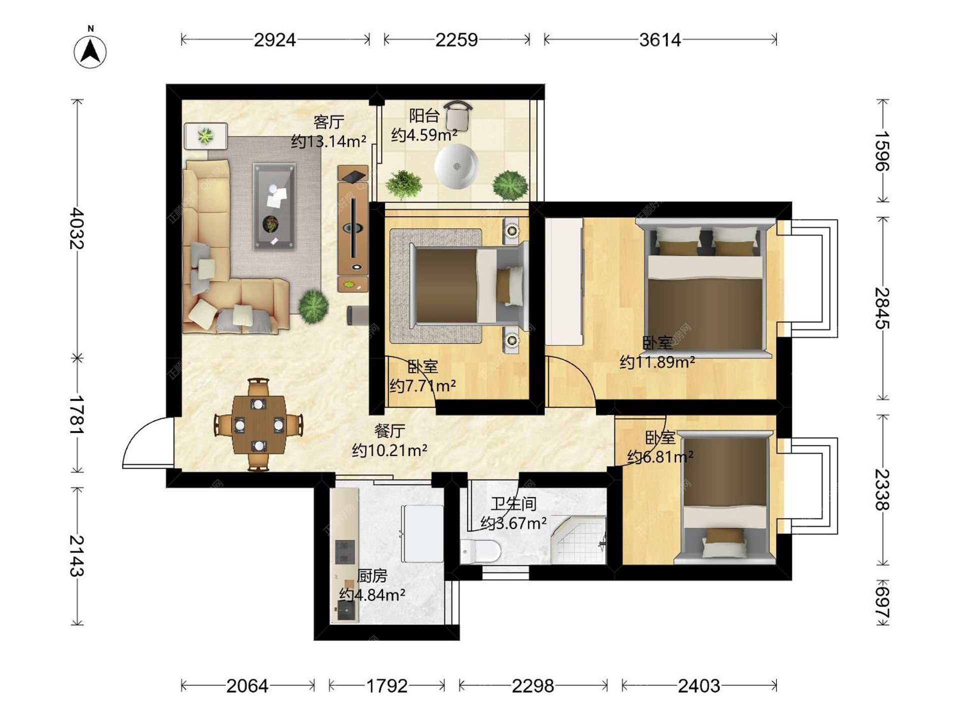 3房2厅1卫