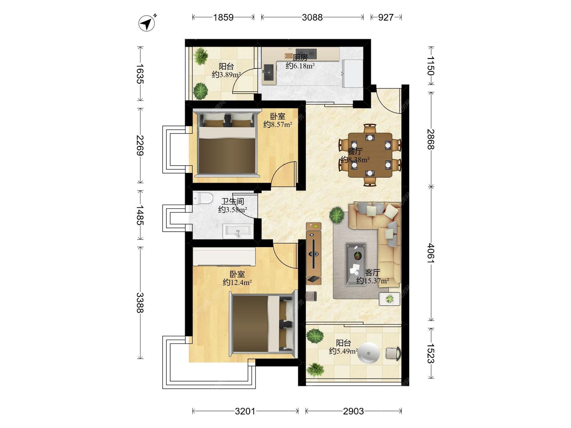 2房2厅1卫