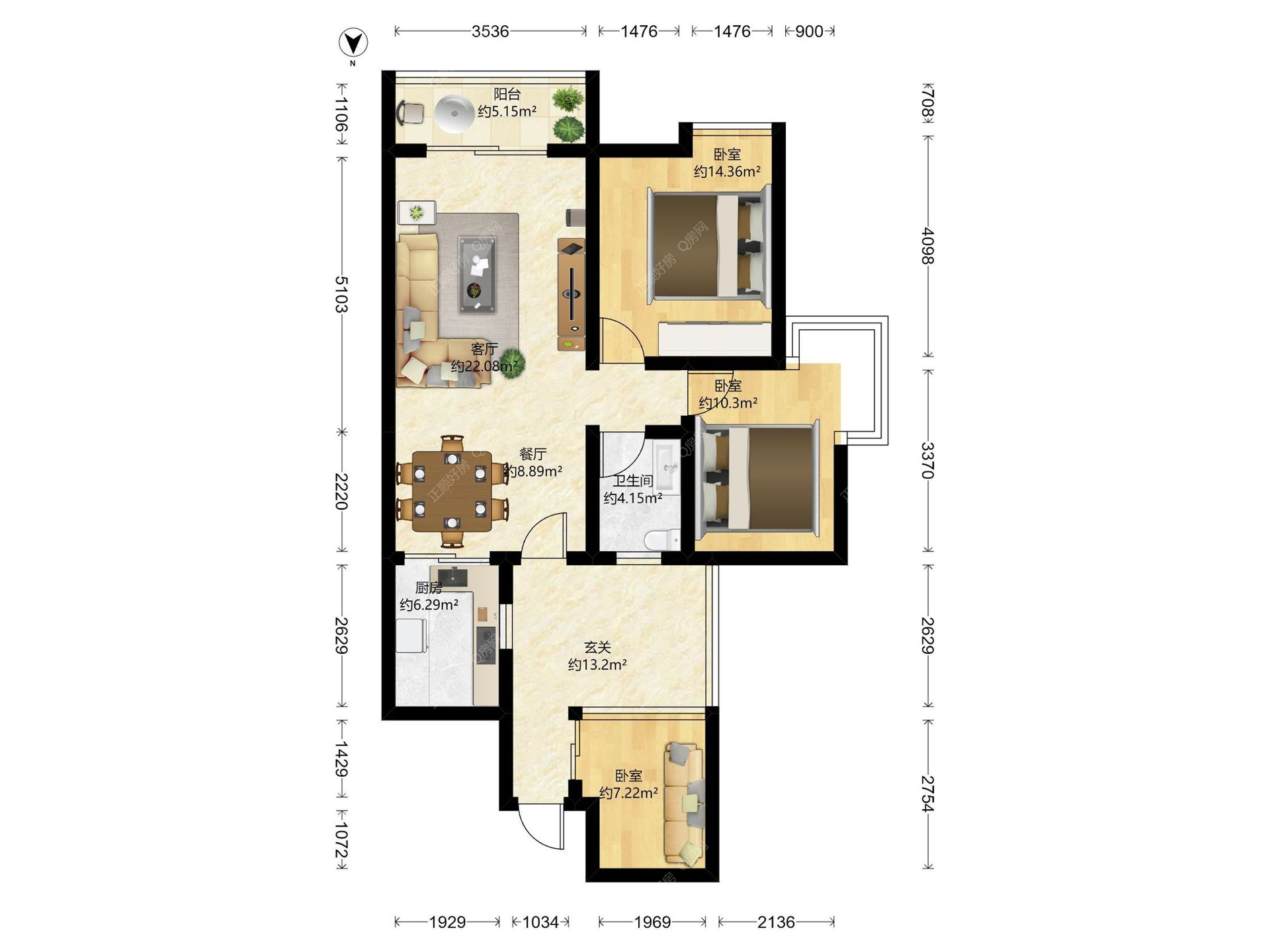 3房2厅1卫