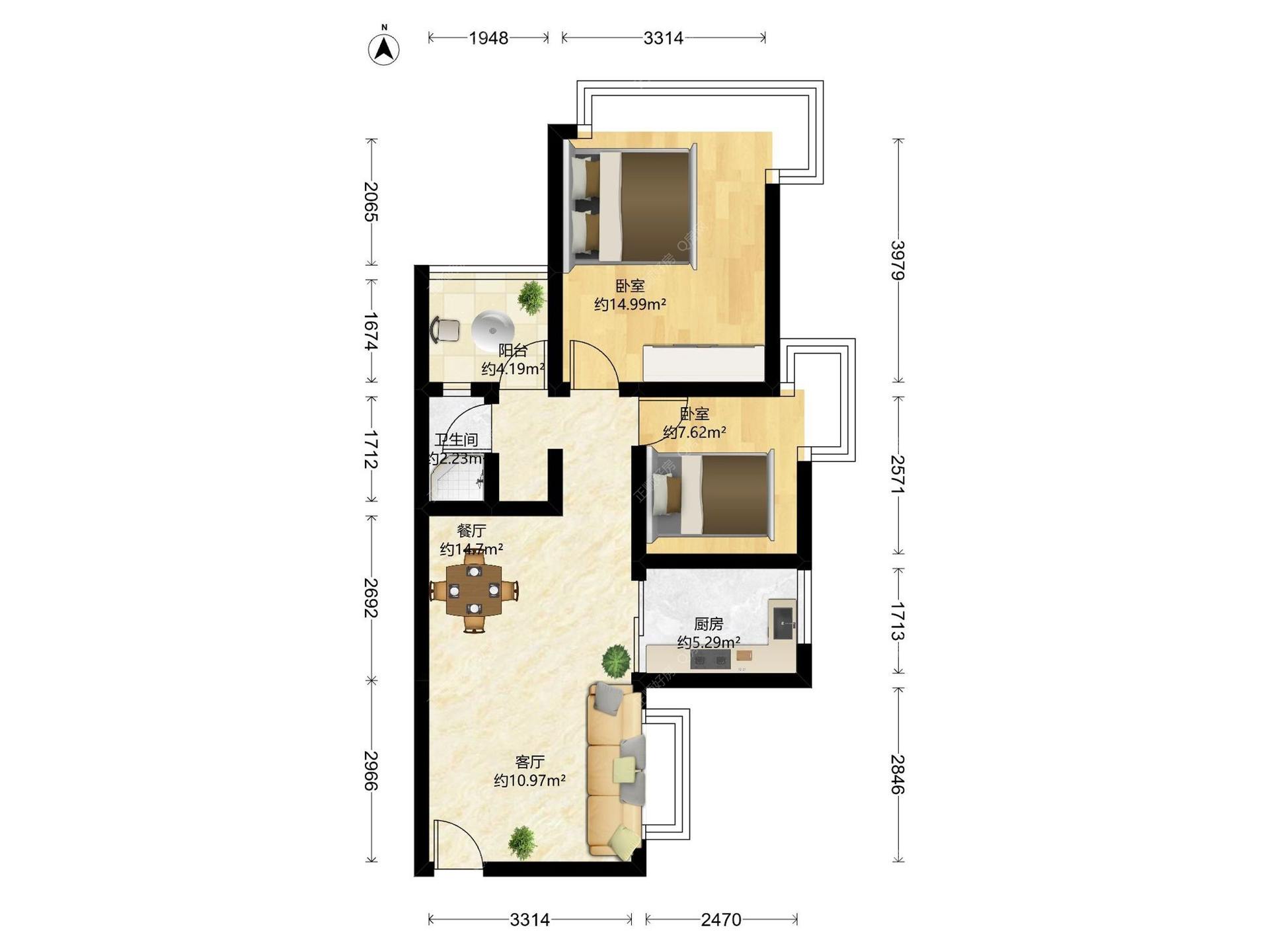 2房2厅1卫