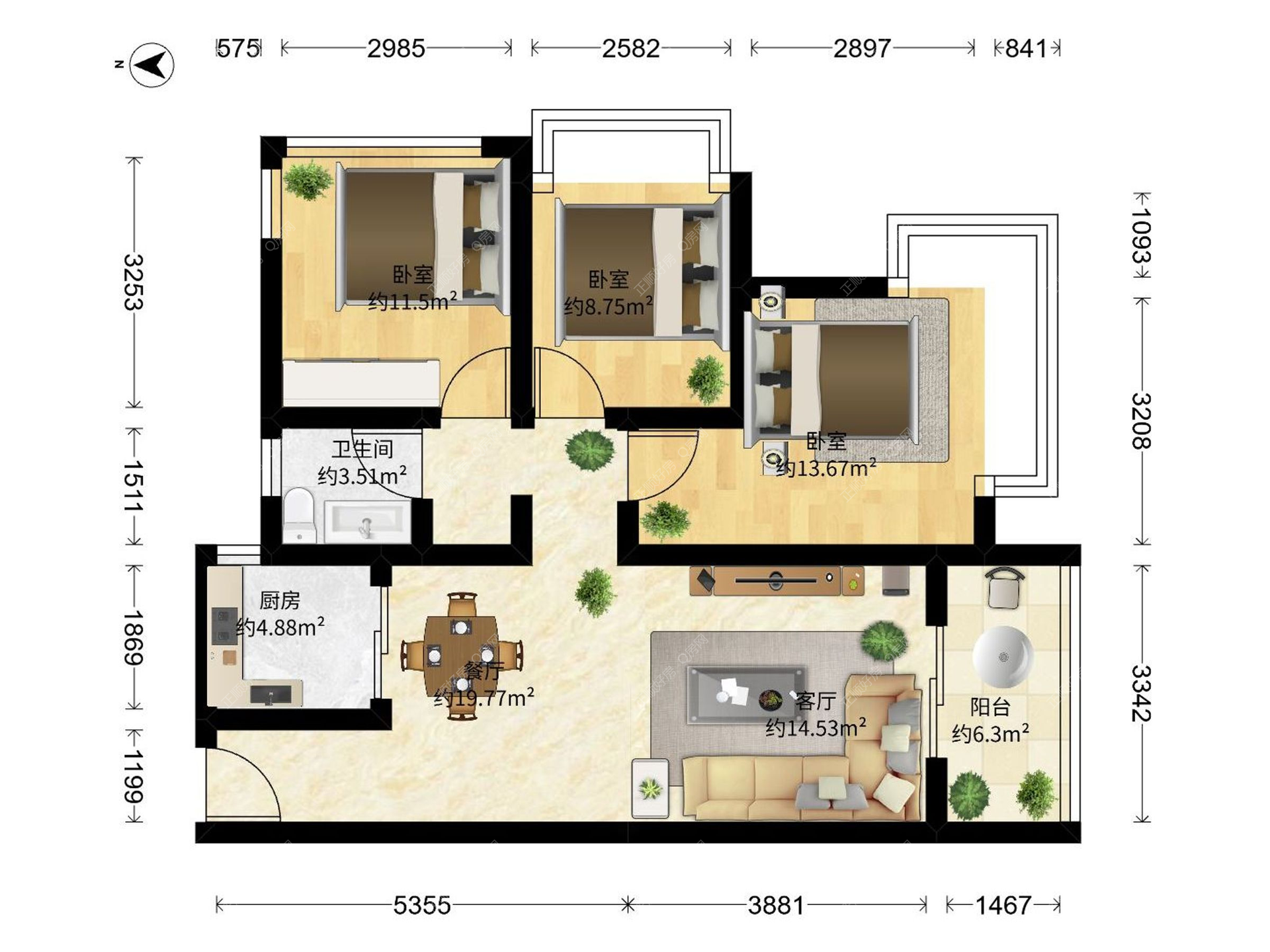 3房2厅1卫