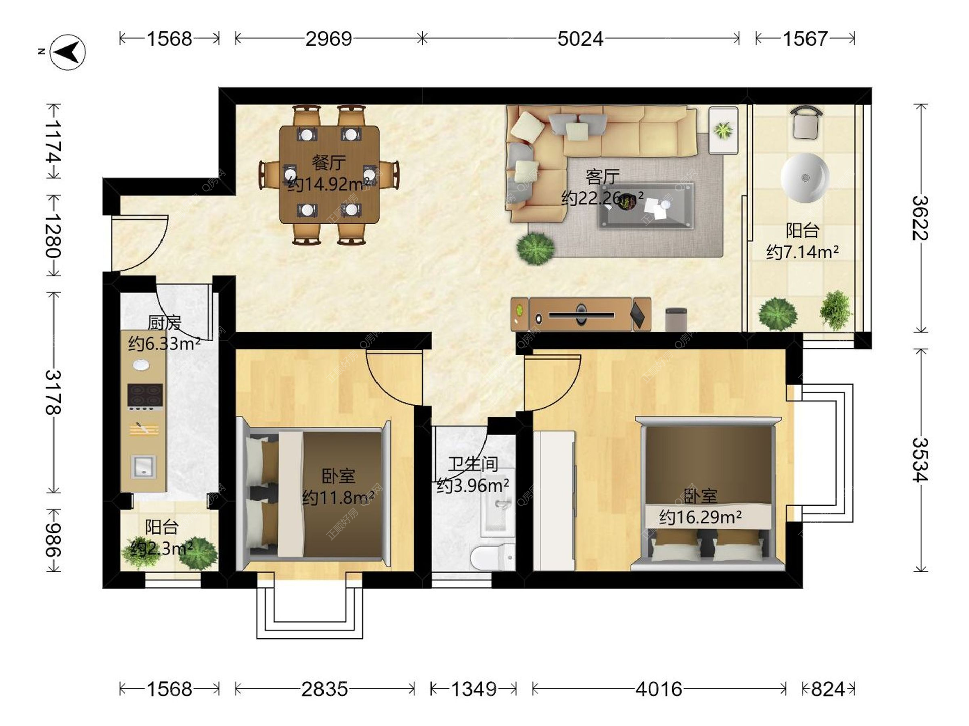 2房2厅1卫