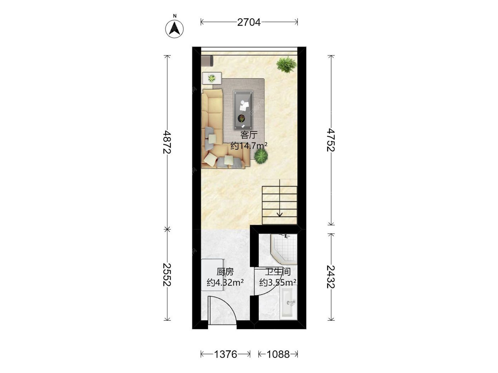 北站宝龙城旁 文园中学对面 稀缺公寓 复试2房1厅