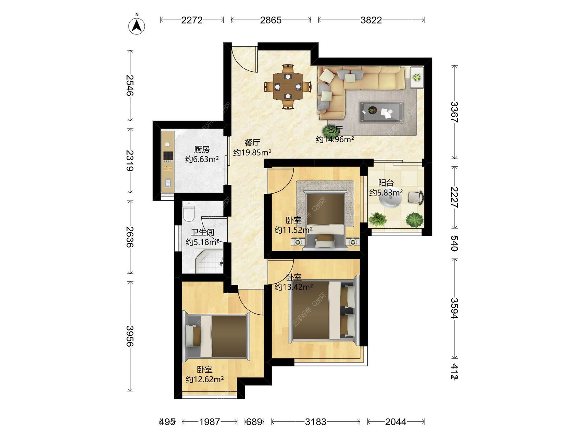 3房2厅1卫