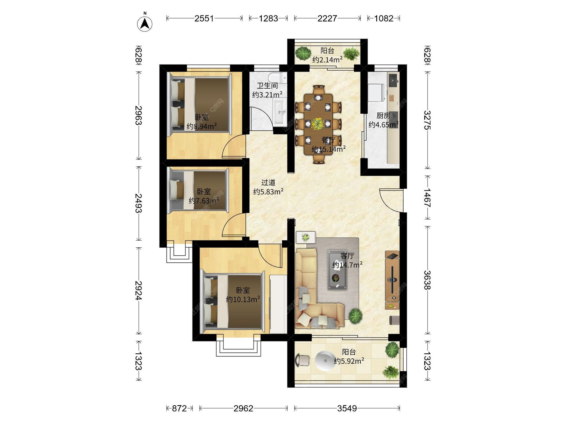 3房2厅1卫