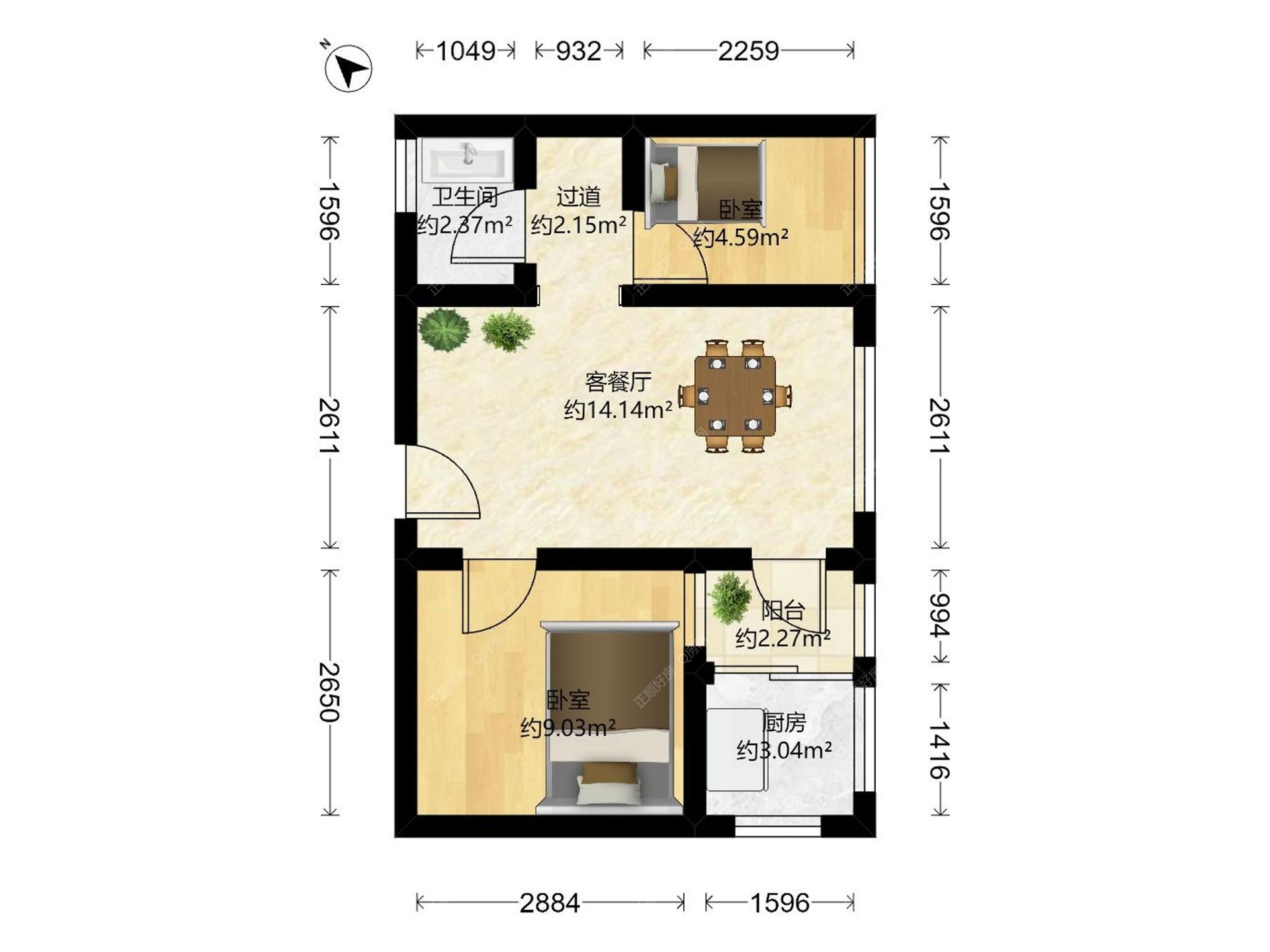 2房1厅1卫