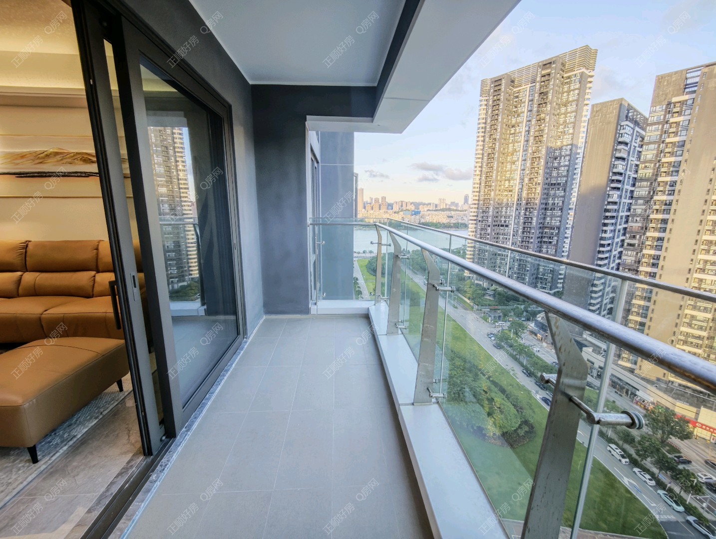 小区是全新小区 环形设计 人车分流 高楼层看河景