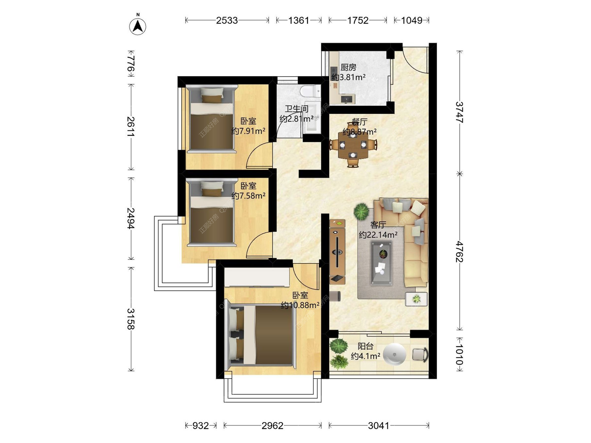 3房2厅1卫