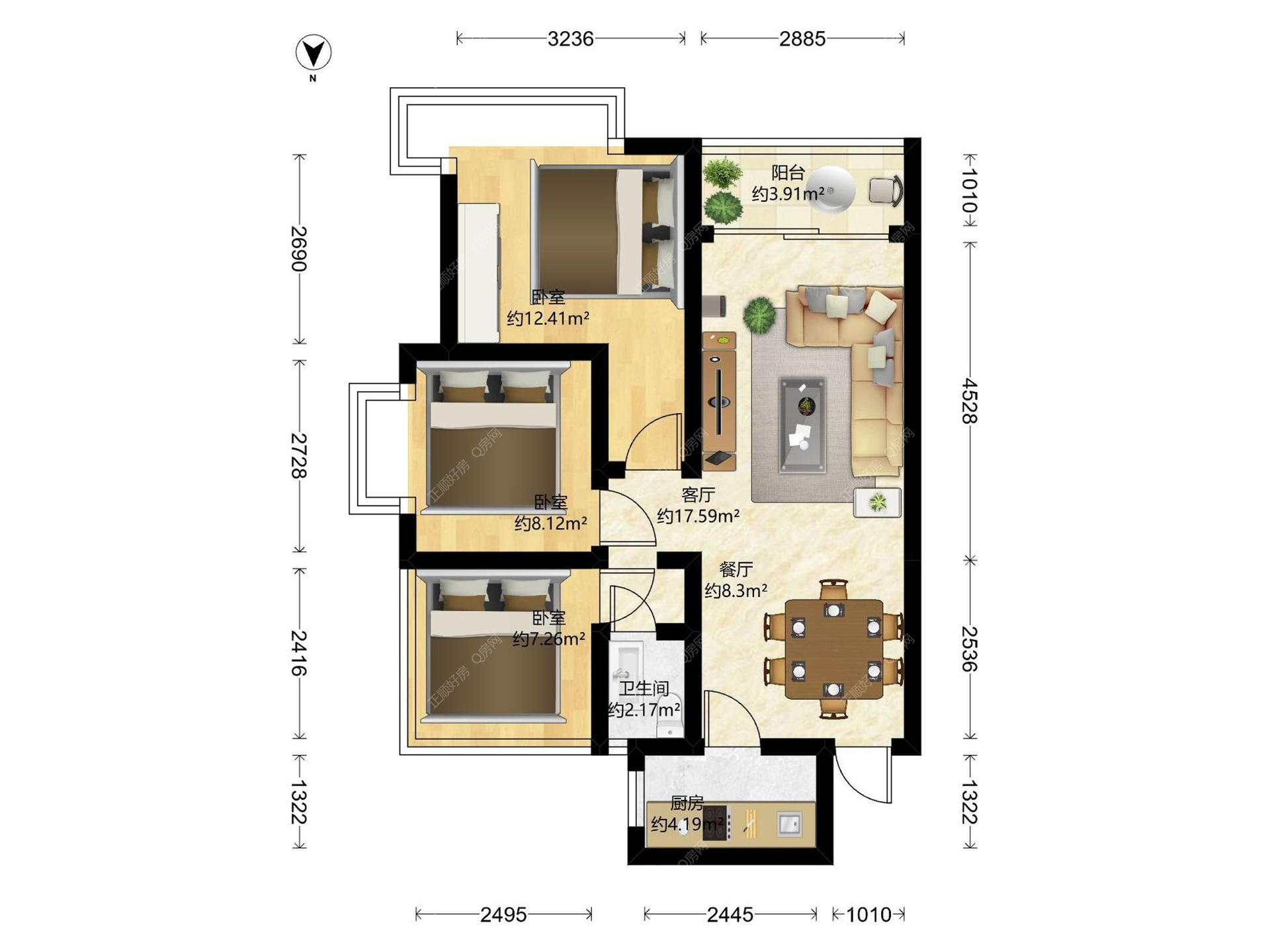 3房2厅1卫
