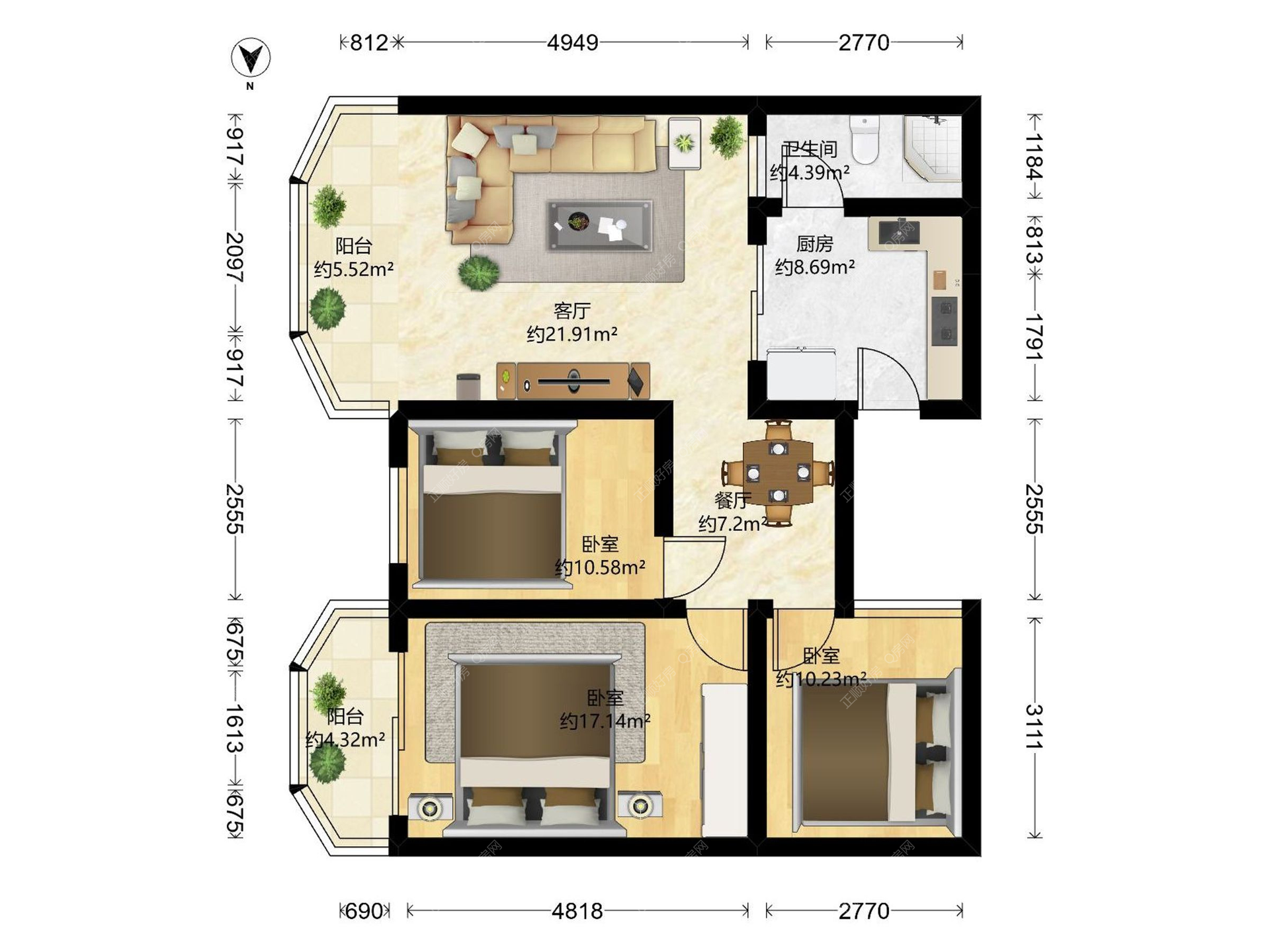 3房2厅1卫