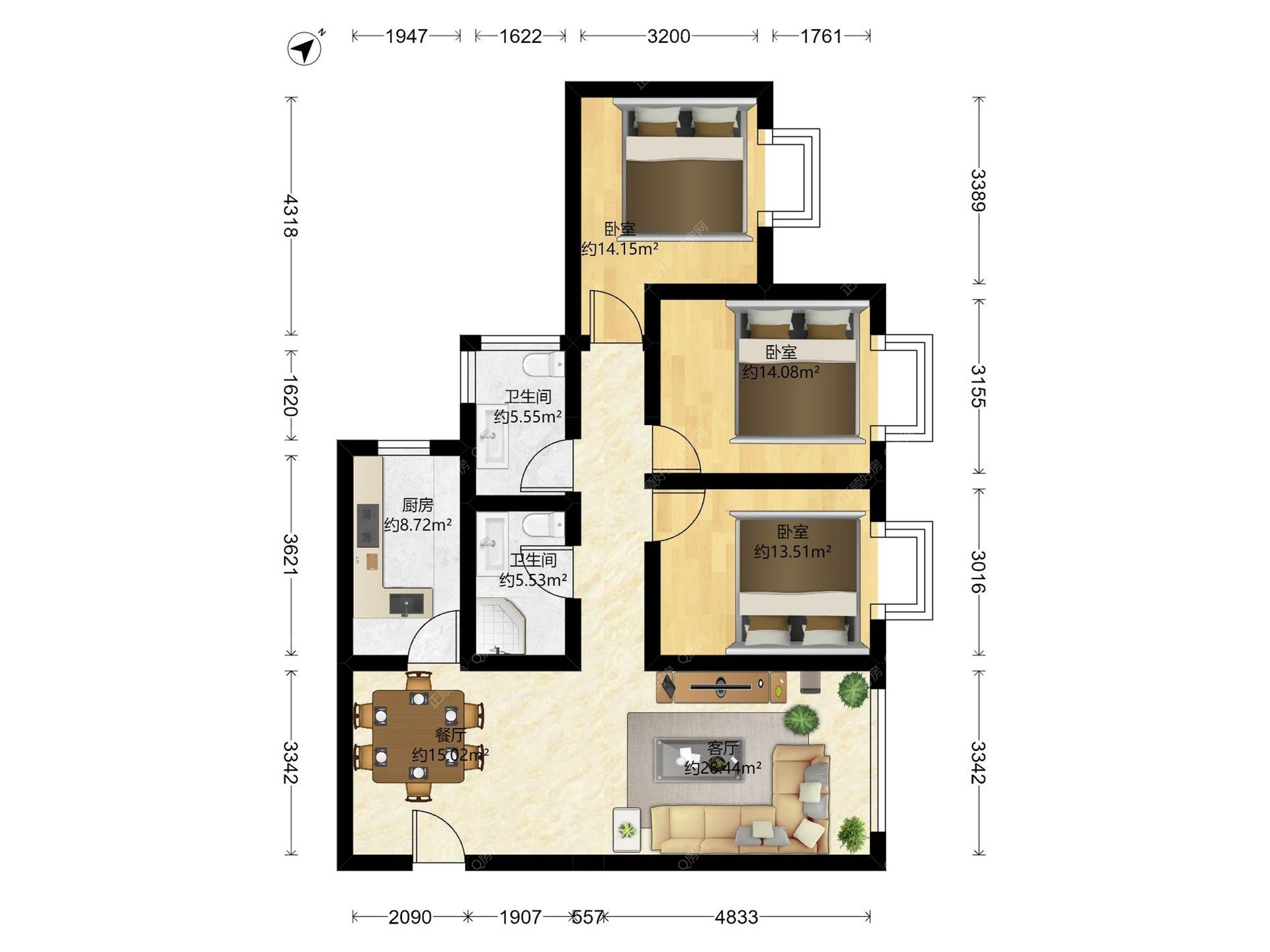 3房2厅1卫
