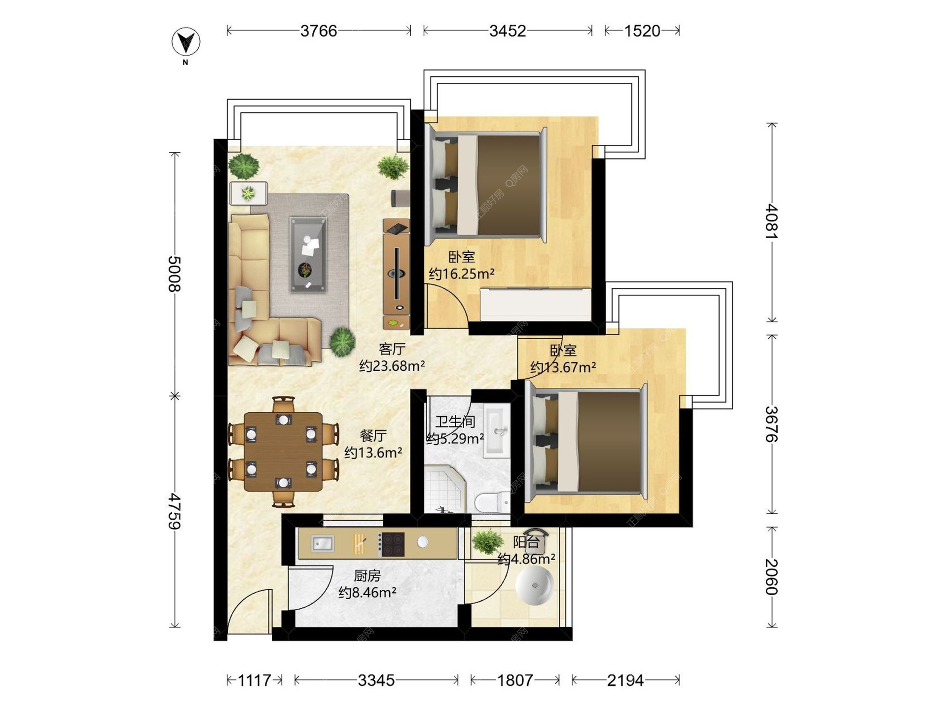 2房2厅1卫