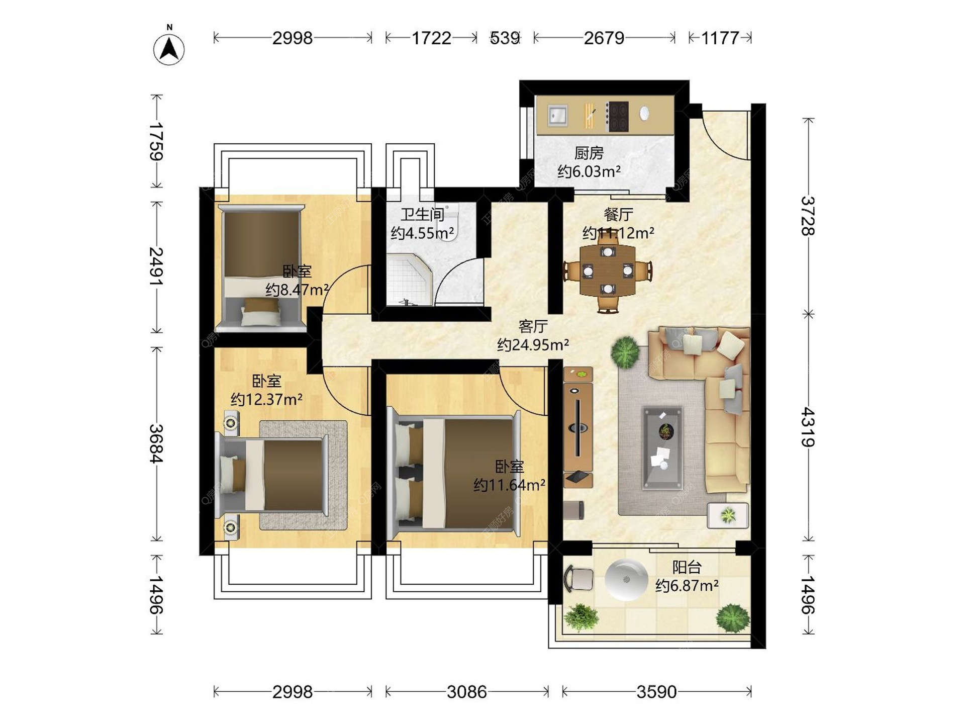 3房2厅1卫