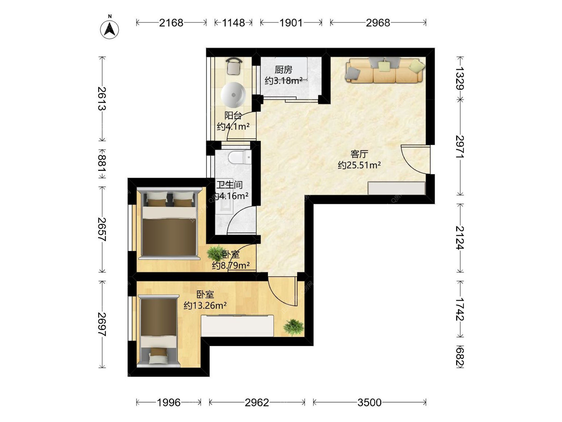 前山 心海州 59㎡ 2房2厅 北向
