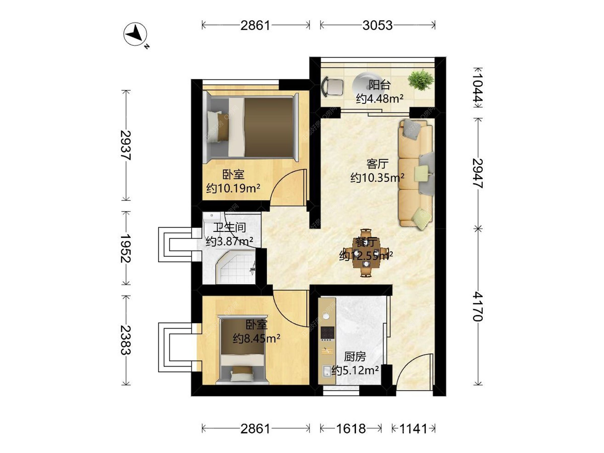 1、柠檬印象稀缺小2房户型,