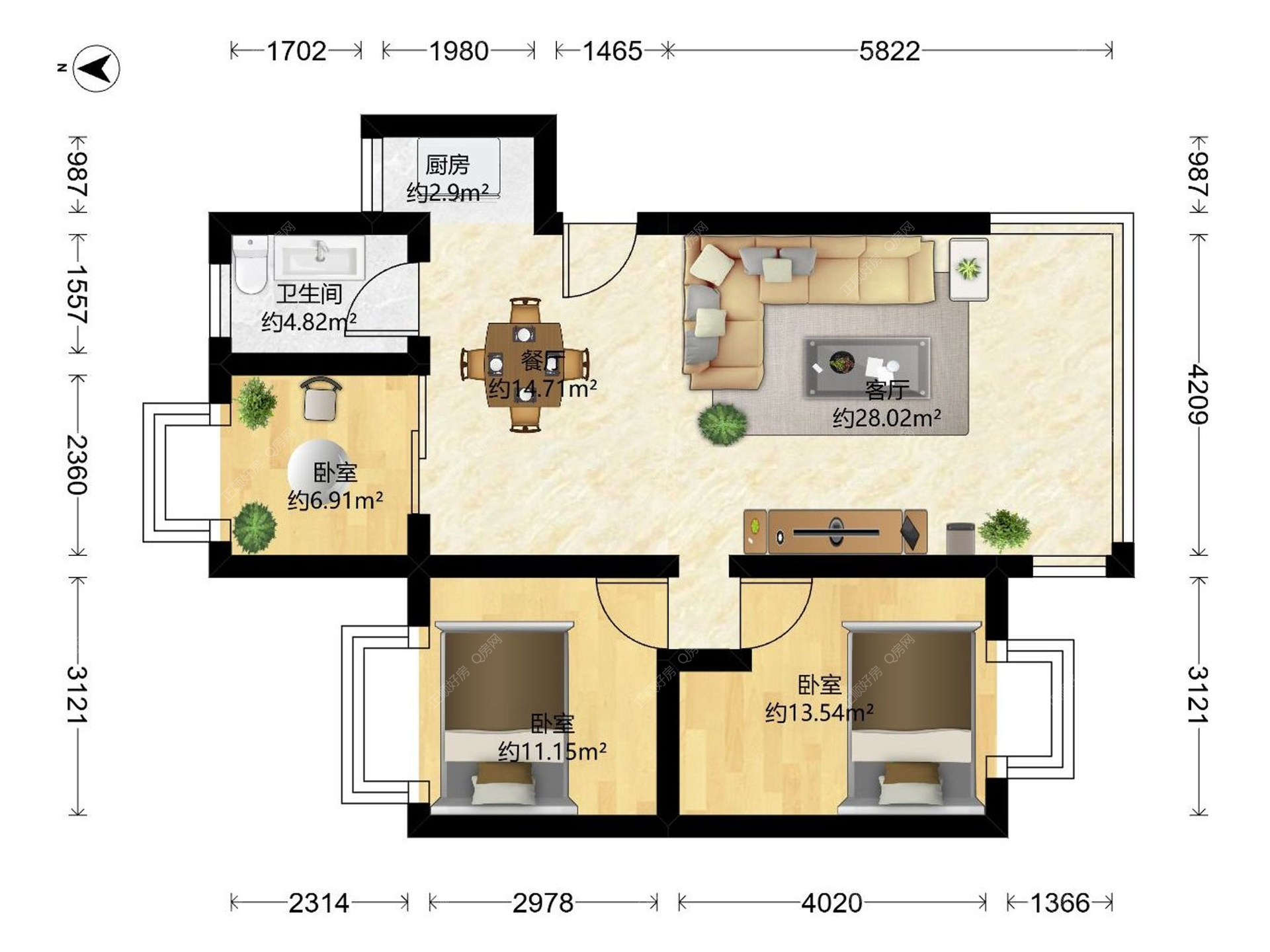 2、精装3房,即可拎包入住。